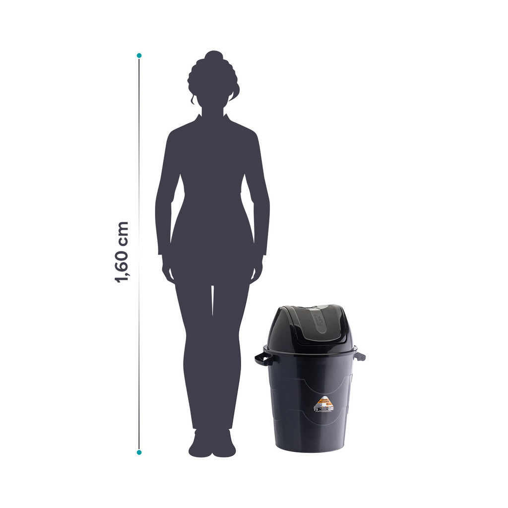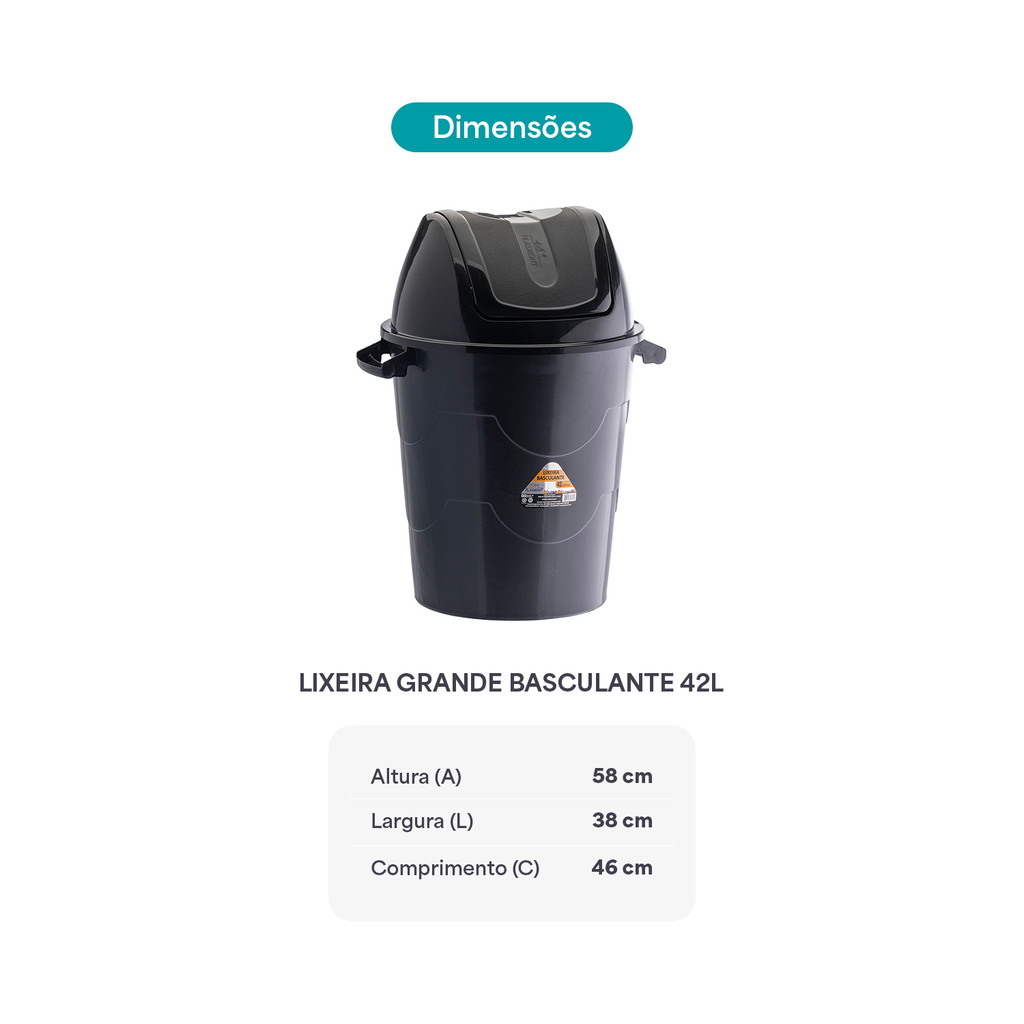 Lixeira Preta Basculante Plástica Grande 42L com Tampa Resistente para Cozinha Banheiro Escritório