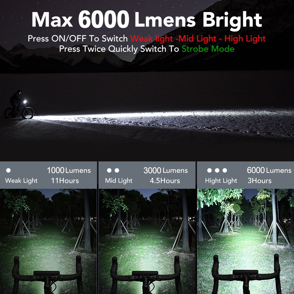 NEWBOLER 10000mAh Bike Light 6000 Lumens Impermeável Bicicleta Frente Flash Light USB Carregamento de Alumínio Ciclismo Farol Acessórios de Bicicleta
