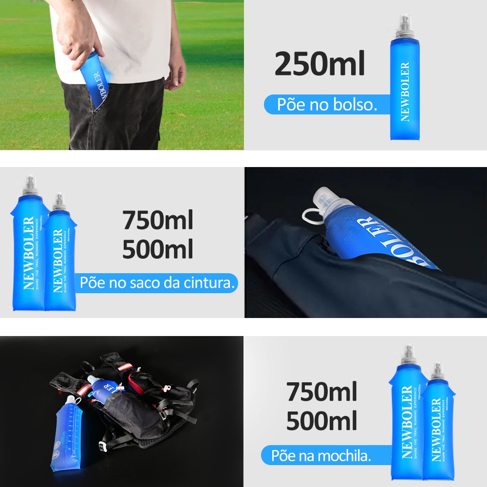 Newboler 750ml 500ml 250ml TPU Frasco Macio De Água Dobrável Saco Pacote De Hidratação Reutilizável Para Caminhadas De Acampamento Esportivo Ao Ar Livre