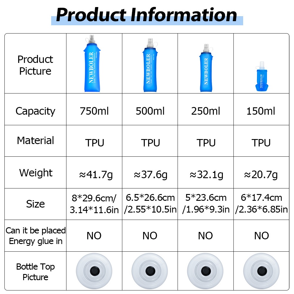 NEWBOLER 150ml 250ml 500ml 750ml Frasco Macio TPU Silicone Garrafa De Água Dobrável Para Esportes Ao Ar Livre Viajar Cor