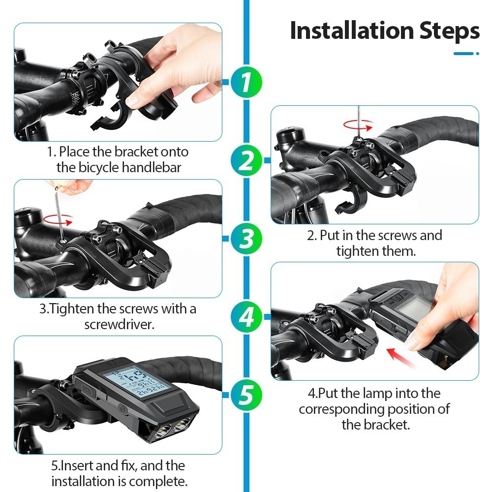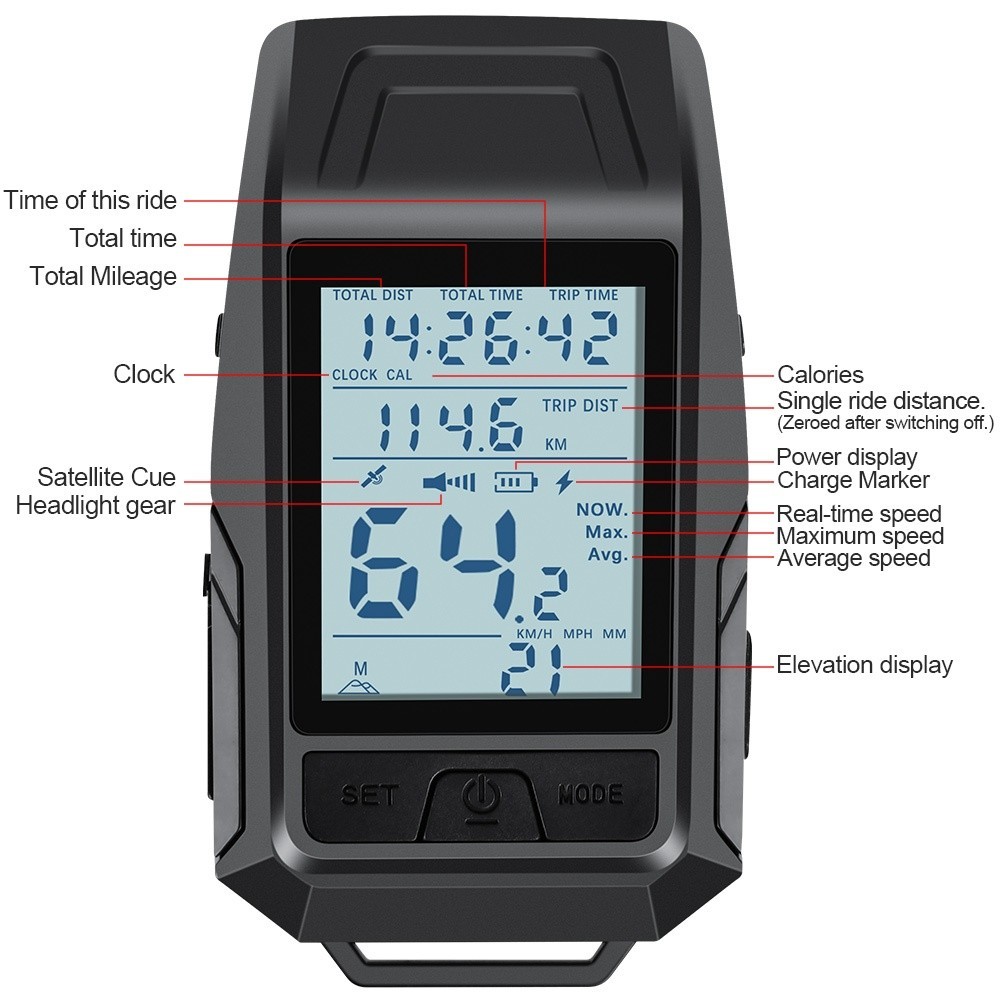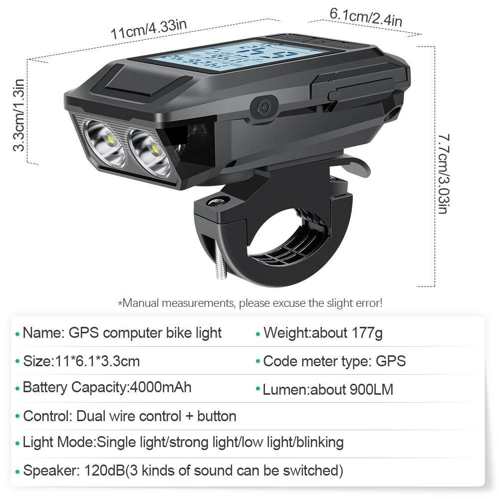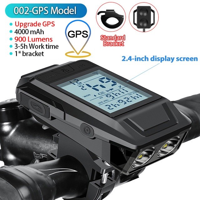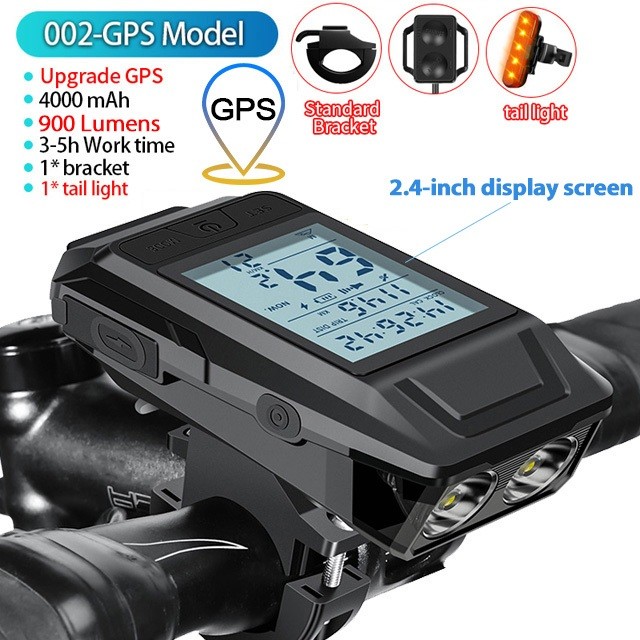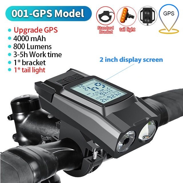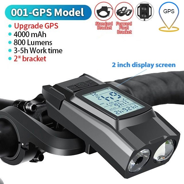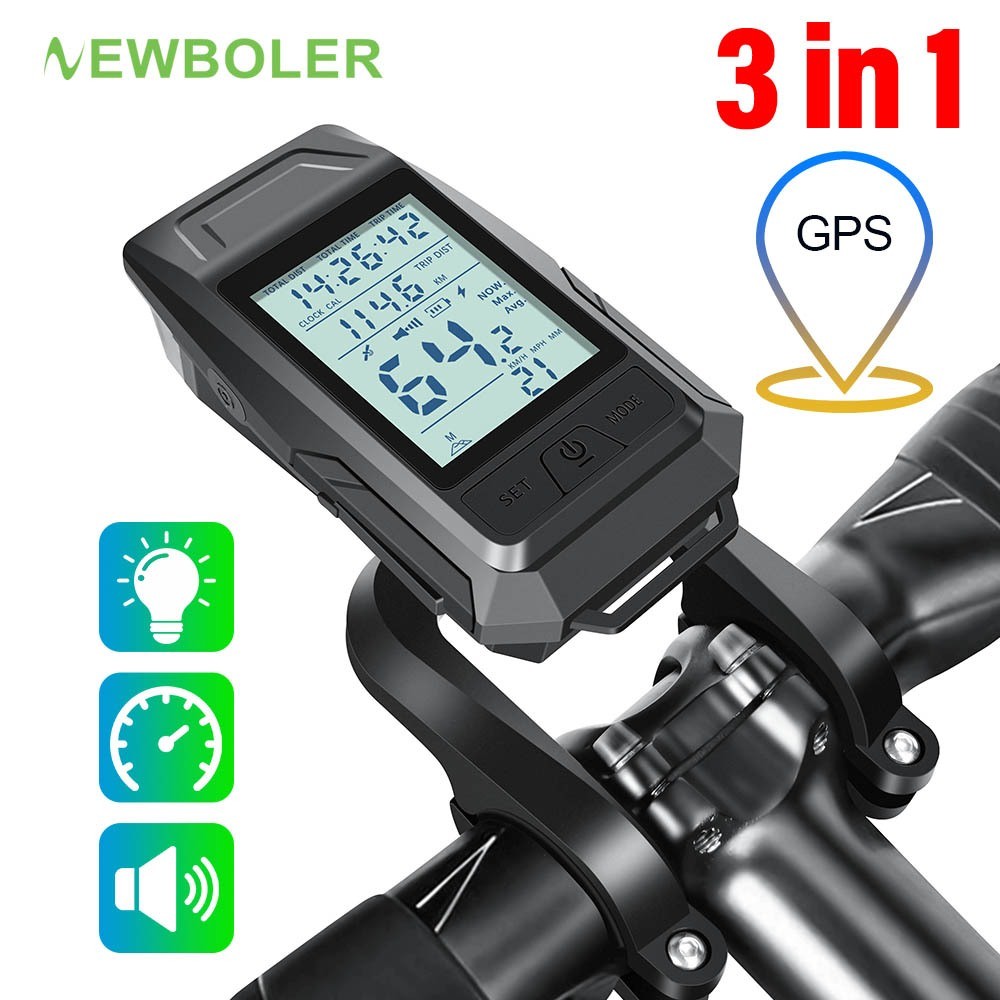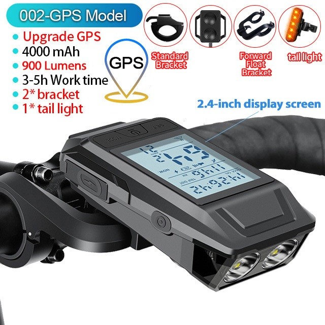 Newboler 3 Em 1 GPS Luz Frontal De Bicicleta 4000mAh Farol De Velocímetro À Prova D'água Lanterna De Equitação Recarregá