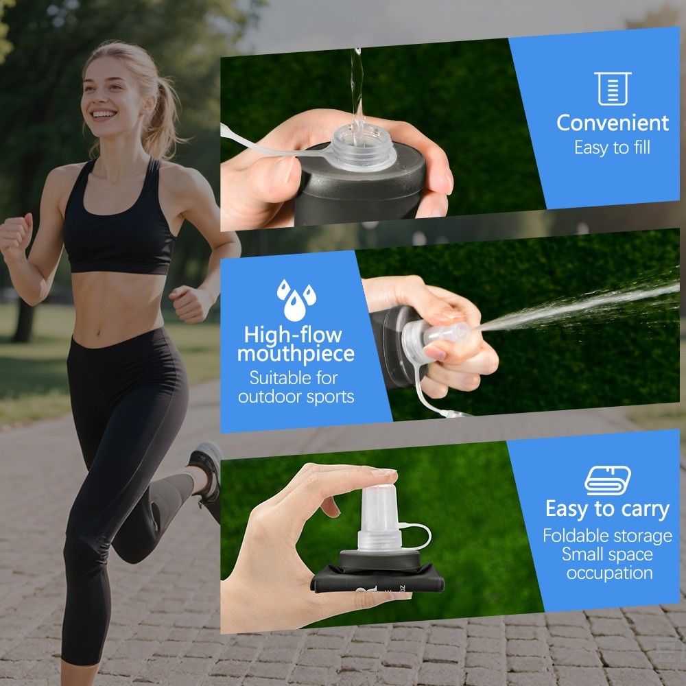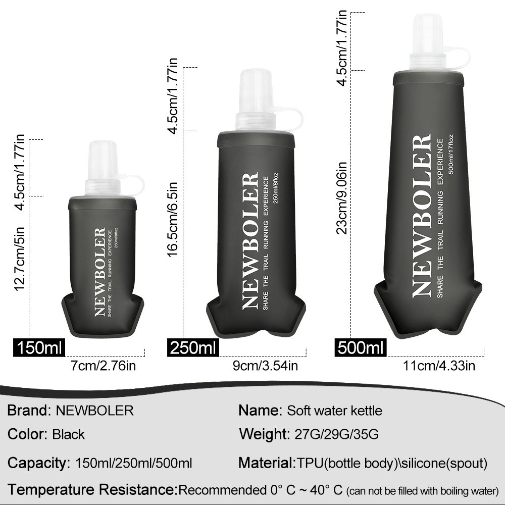 NEWBOLER 150ml 250ml 500ml Frasco Macio TPU Silicone Garrafa De Água Dobrável Para Esportes Ao Ar Livre Maratona Corrida