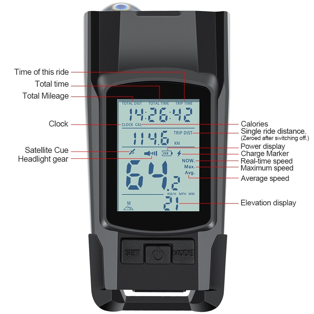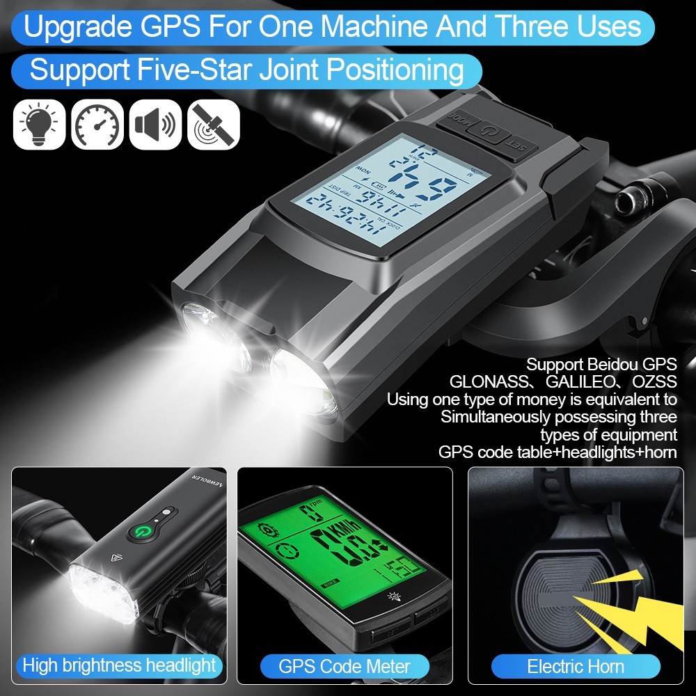 Newboler 3 Em 1 GPS Luz Dianteira Da Bicicleta 4000mAh Velocímetro Farol À Prova Dwaterproof Água Usb Recarregável Equit