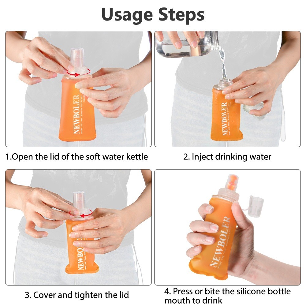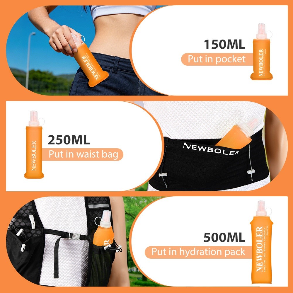 NEWBOLER 150ml 250ml 500ml Frasco Macio TPU Silicone Garrafa De Água Dobrável Para Esportes Ao Ar Livre Viajar Correndo