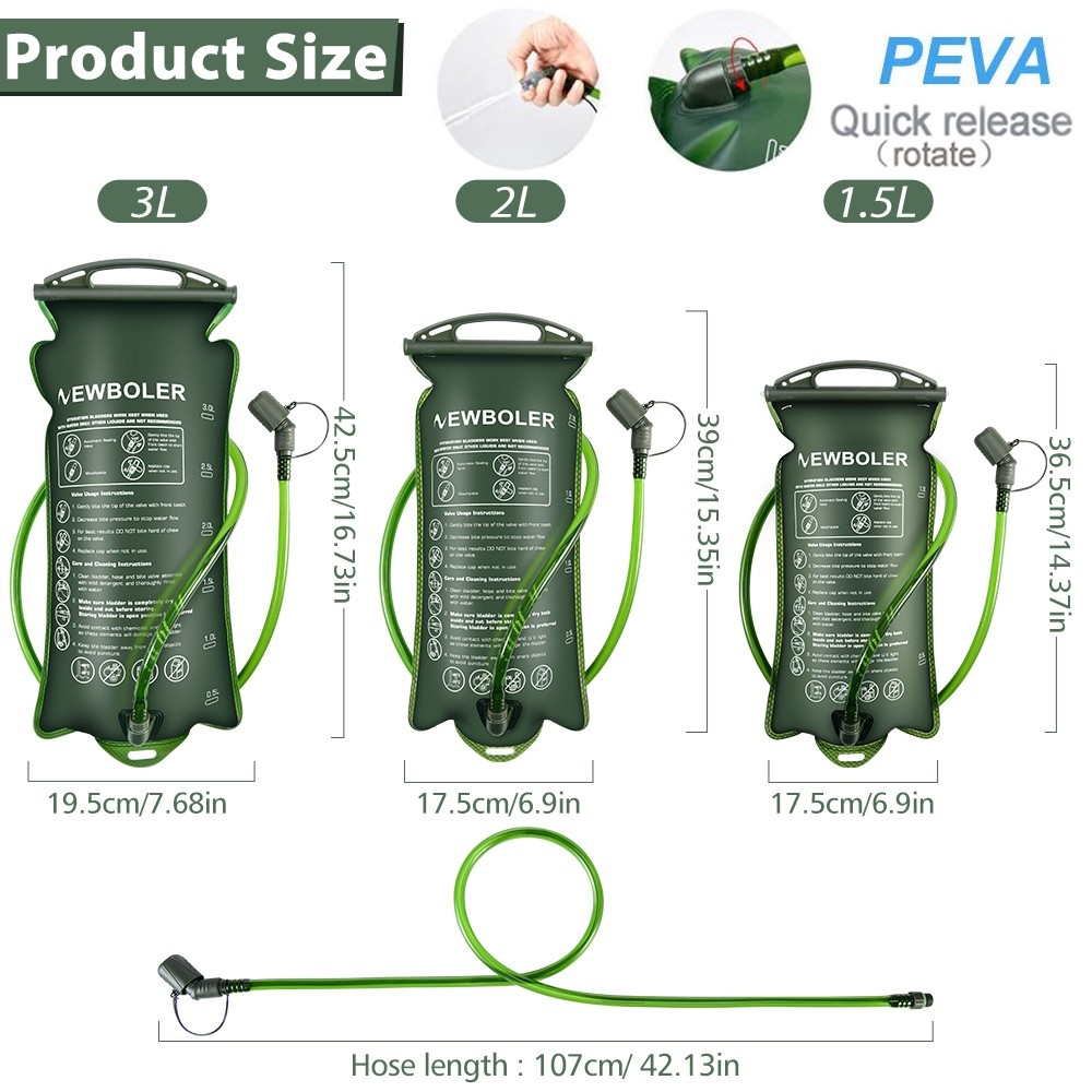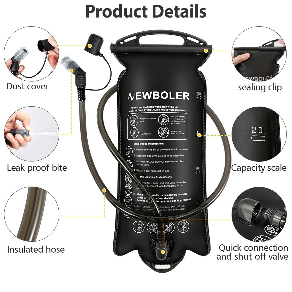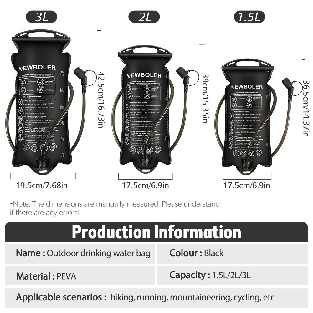 Newboler 1.5L 2L 3L Bexiga De Água PEVA Correndo Saco De Hidratação Portátil À Prova De Vazamento Para Caminhadas Ciclis
