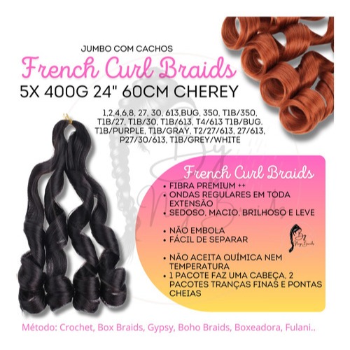 Cabelo Jumbo French Curl Ruivo #350 C/ Pontas Onduladas French Curl Braids Premium 400gr