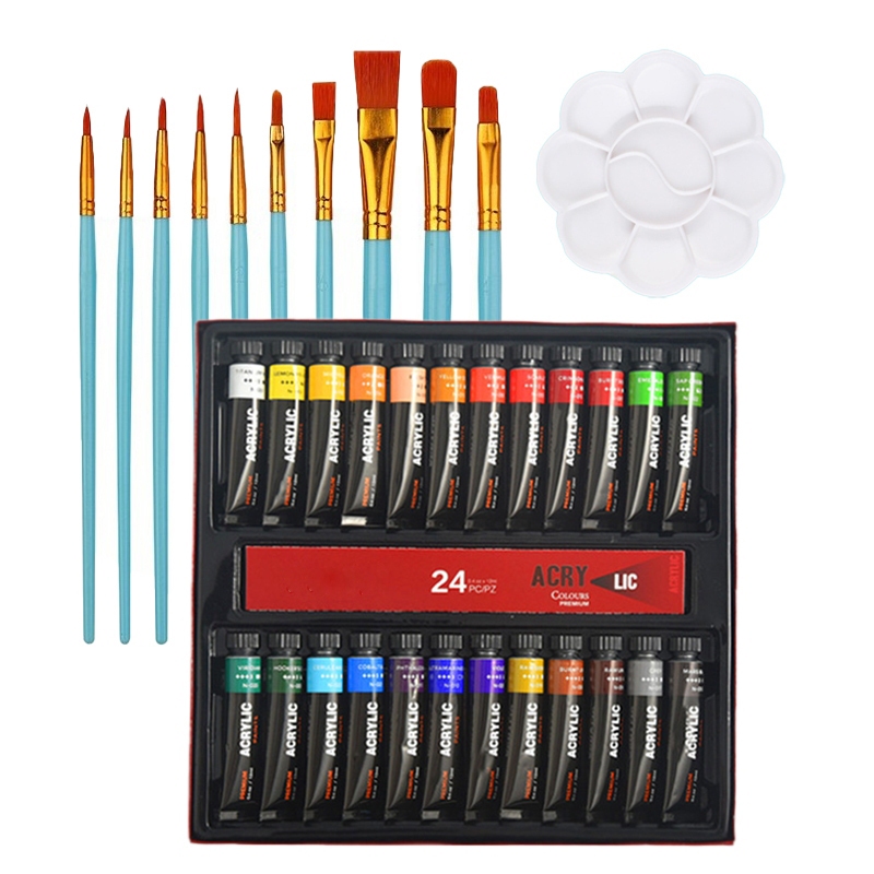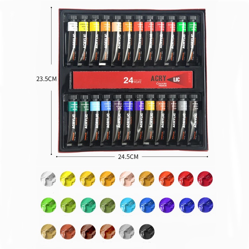 Kit Pintura em Tela Profissional 12/24 Tinta Acrílica Com Pincel E Paleta Prova D'água Kit Desenho