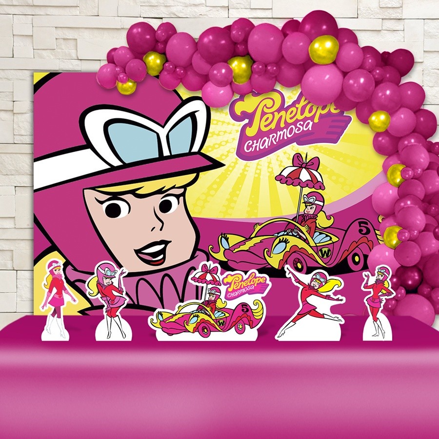 Kit Ouro Festa Aniversário Penélope Charmosa Desenho Decoração Cenários