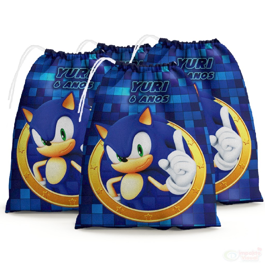 30 Sacolinhas Surpresa Personalizada Tecido Sonic Anel do Poder (15x20)