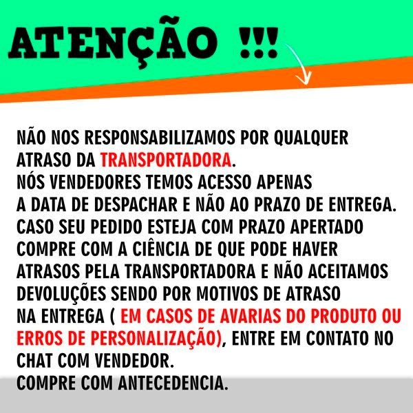 Sob encomenda: envio após 7 dias da compra