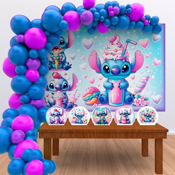 Kit Ouro Festa Aniversário Stitch Doces Desenho Decoração Cenários