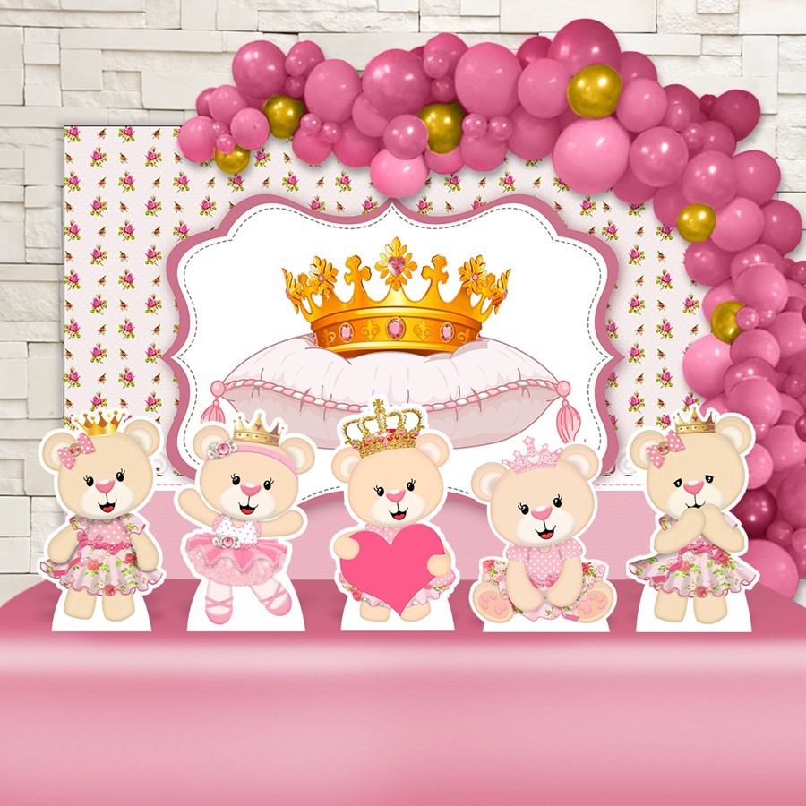 Festa Aniversário Ursinha Princesa Decoração Kit Ouro
