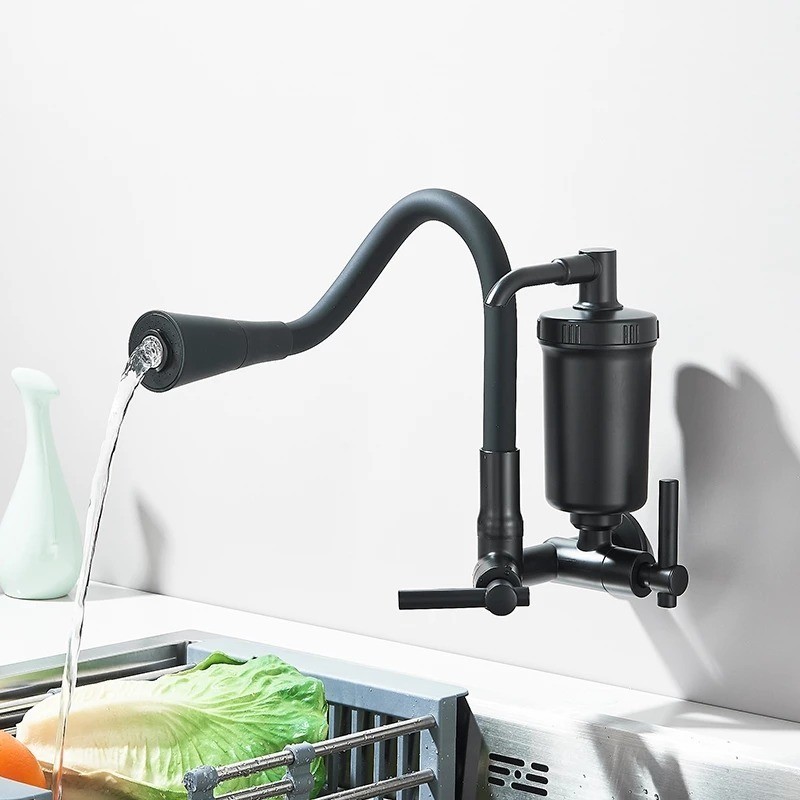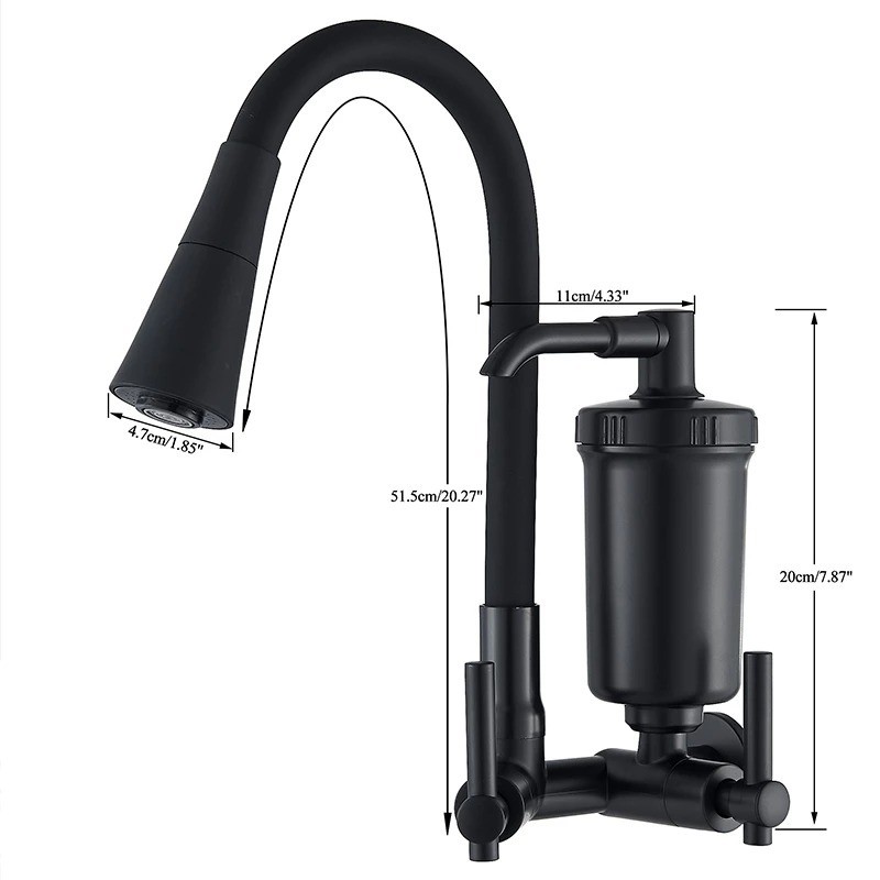 Torneira Filtro Parede Cozinha Gourmet Flexível 1/4 Volta Preta Luxo Purificador