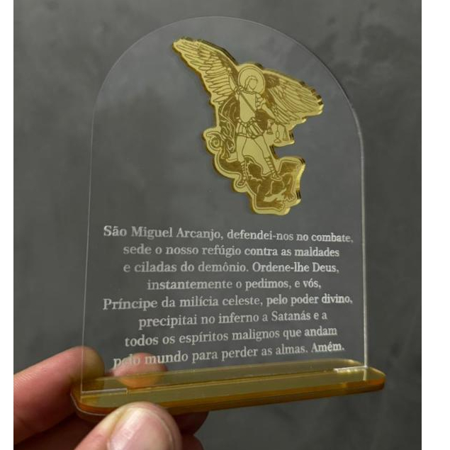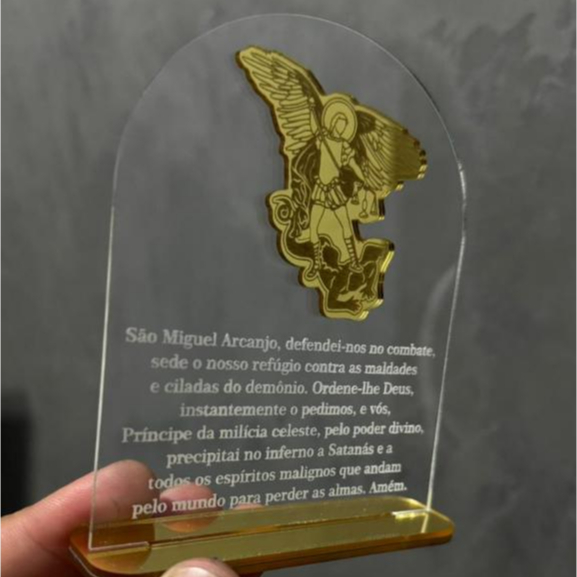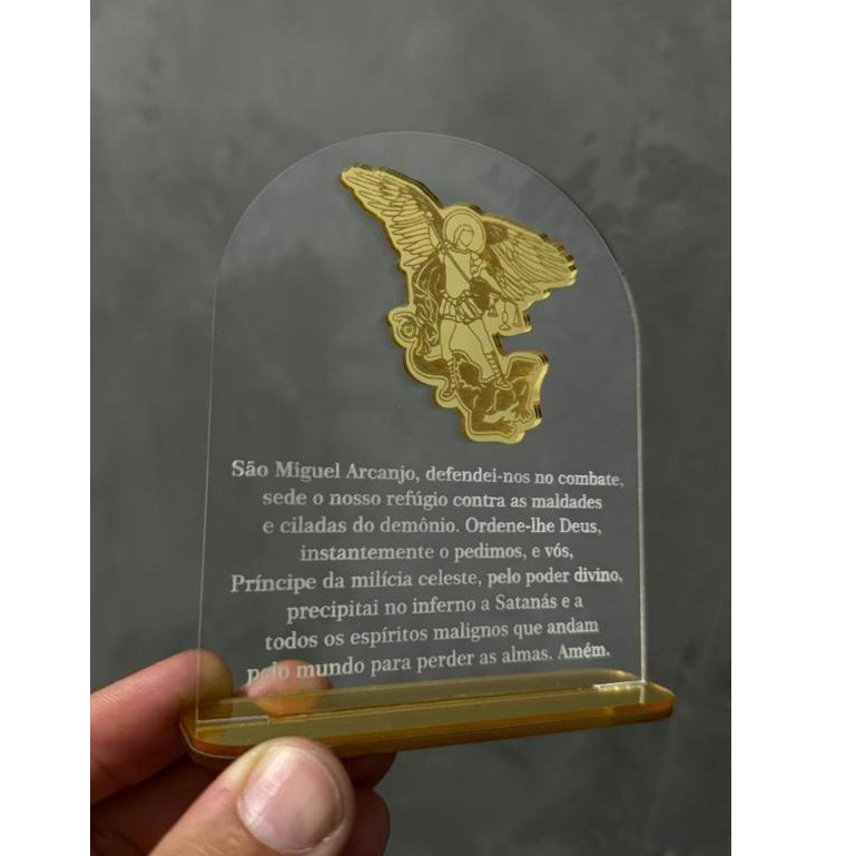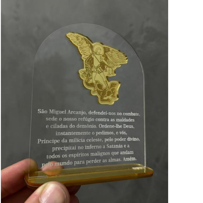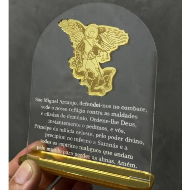 PLACA ORAÇÃO E IMAGEM DE SÃO MIGUEL ARCANJO EM ACRÍLICO/RELIGIOSO/DECORAÇÃO/ANJO