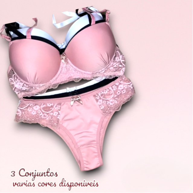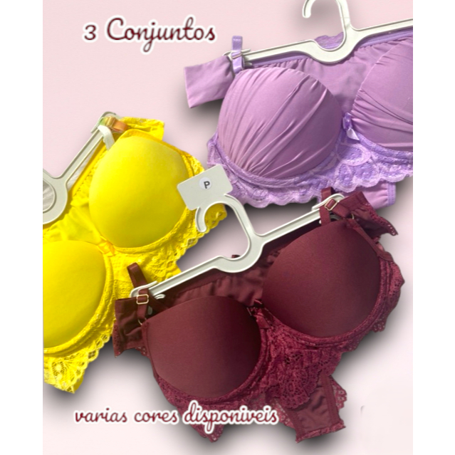 Kit 3 Conjuntos lingerie de microfibra com renda modelos variados
