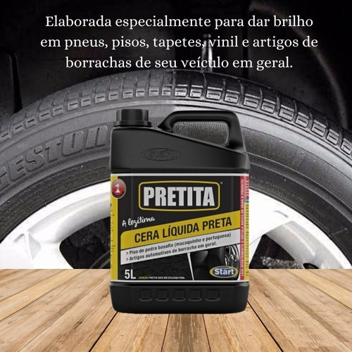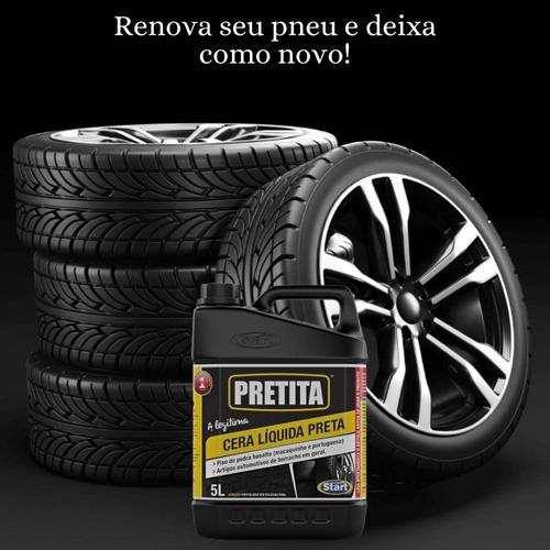 Caixa 4 unidades Cera Liquida Preta - Pretita Start 5L Pretinho P/ Pneu Tapetes Borrachas e Pisos