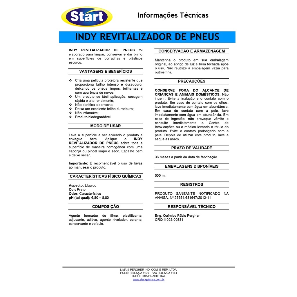 Indy Pretita Revitalizador Pneus 500ml Pretinho