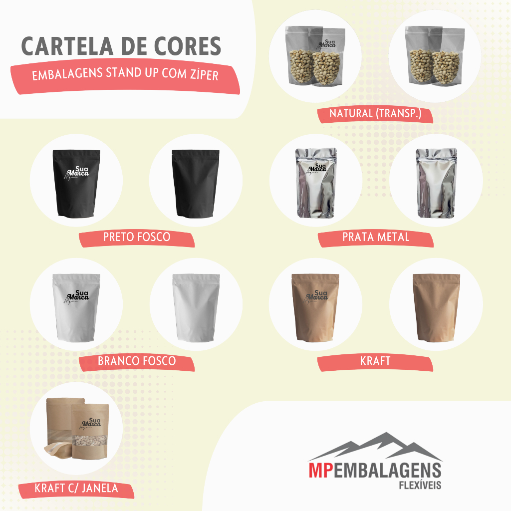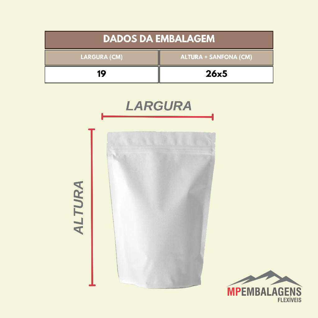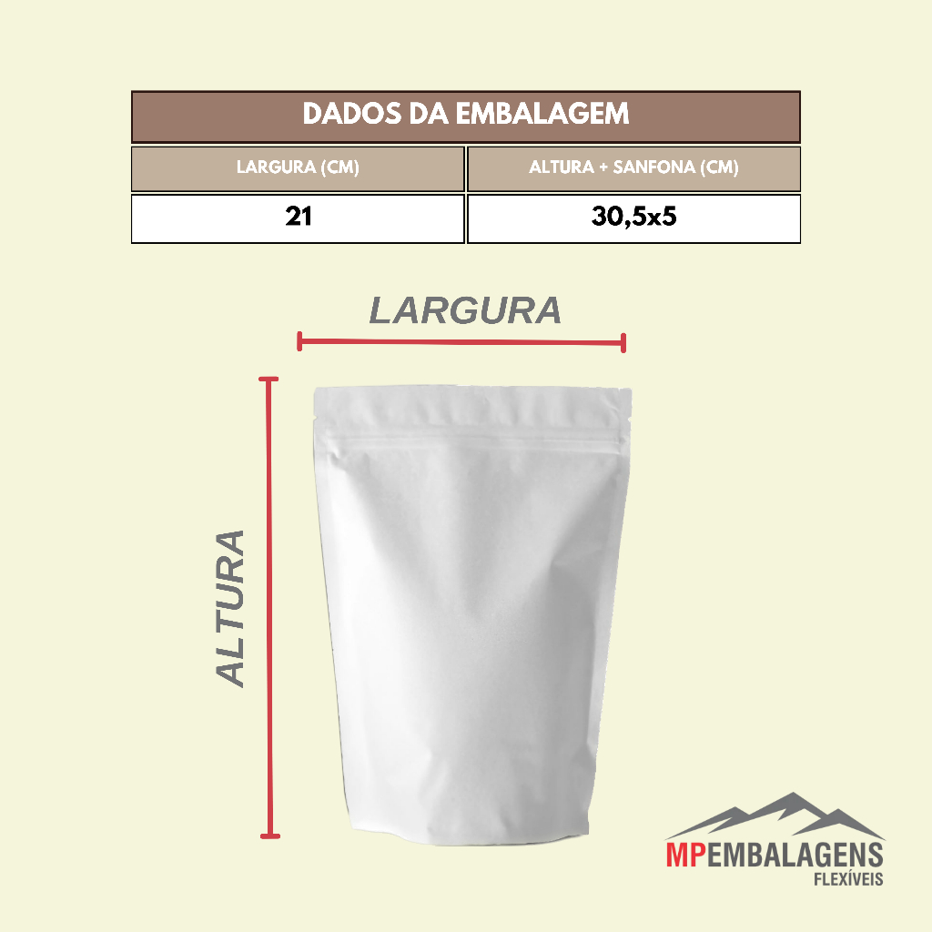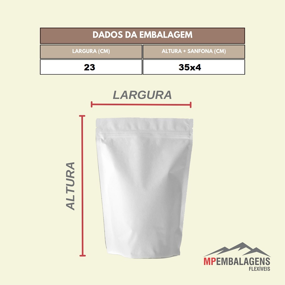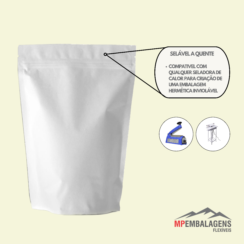 EMBALAGEM STAND UP POUCH COR BRANCO COM ZÍPER (pcte 100unids)
