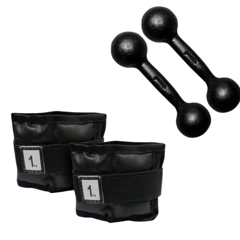 Halteres 1kg ferro par + Tornozeleira 1kg par kit completo