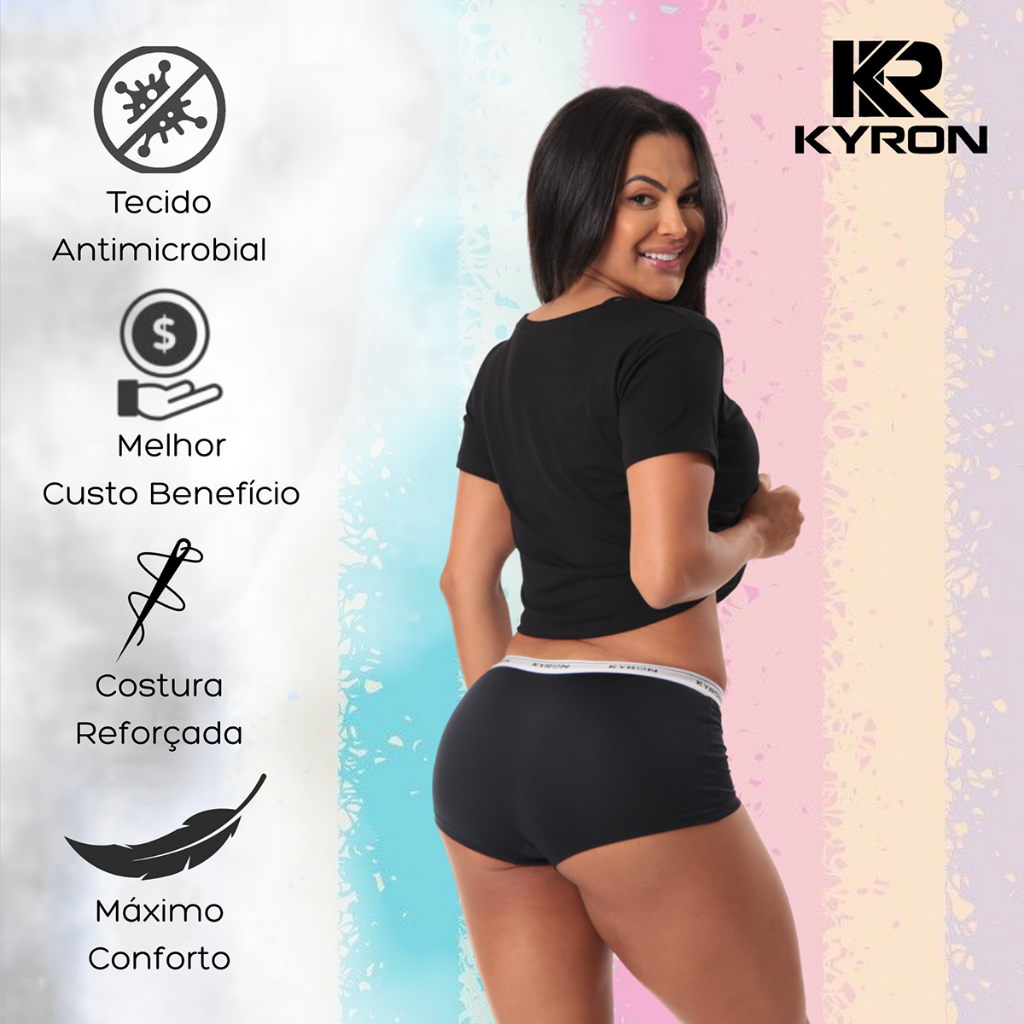 Kit 10 Calcinhas Box Kyron Cueca Feminina Boxer De Microfibra Com Forro
