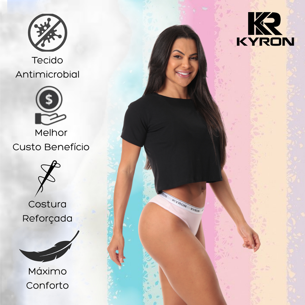 Kit 5 Calcinhas De Microfibra Fio Dental Kyron Com Cós Alto Forro Duplo