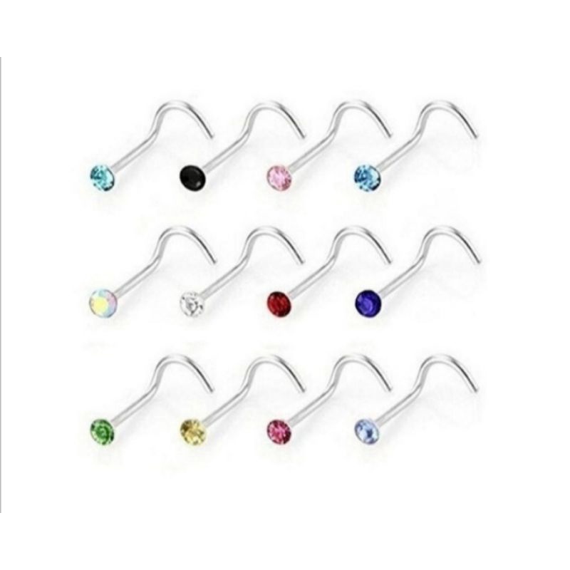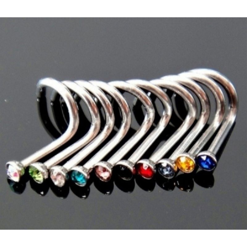 Piercing aço cirúrgico nariz pedra cores e cateter