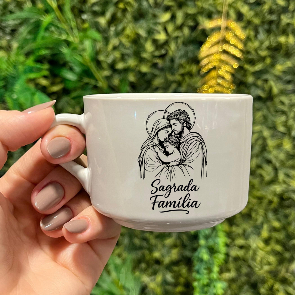 xícara caneca dela Sagrada Família porcelana louca religiosa decoração lembrança presente