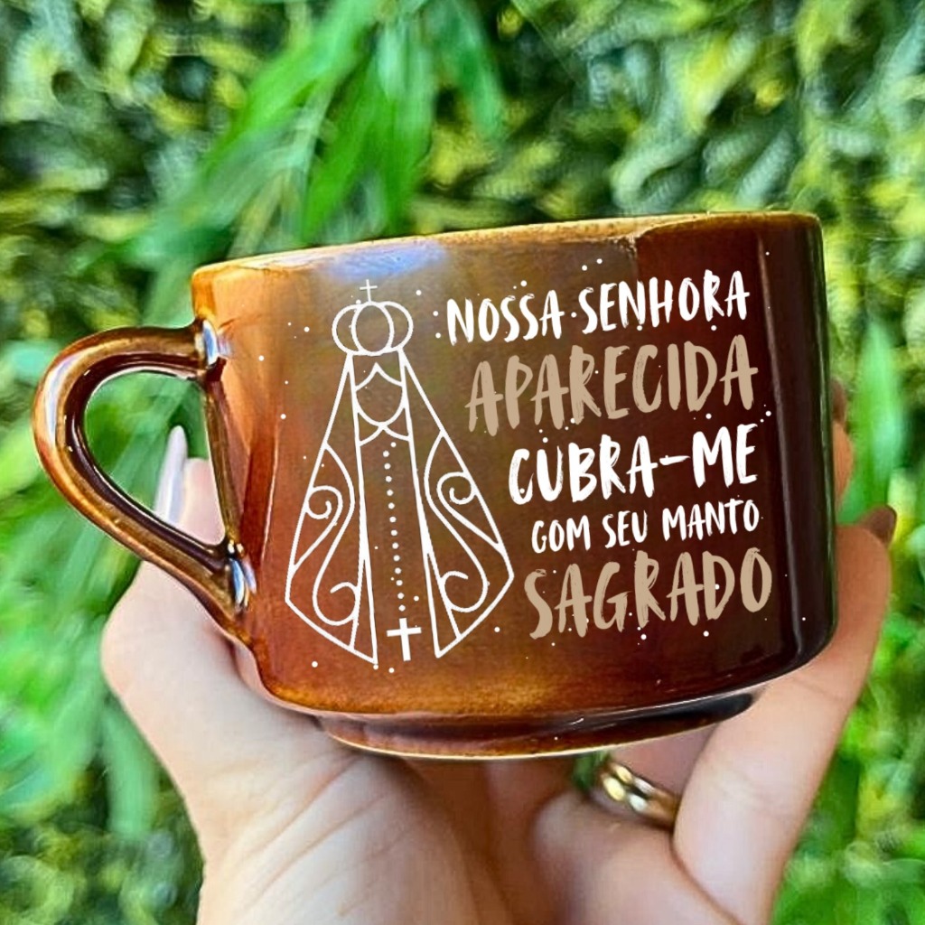 caneca xicara de nossa senhora aparecida porcelana louça presente religioso lembrança