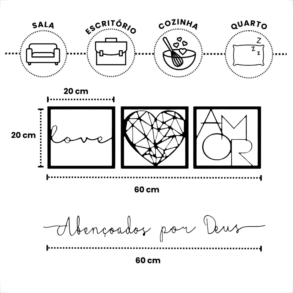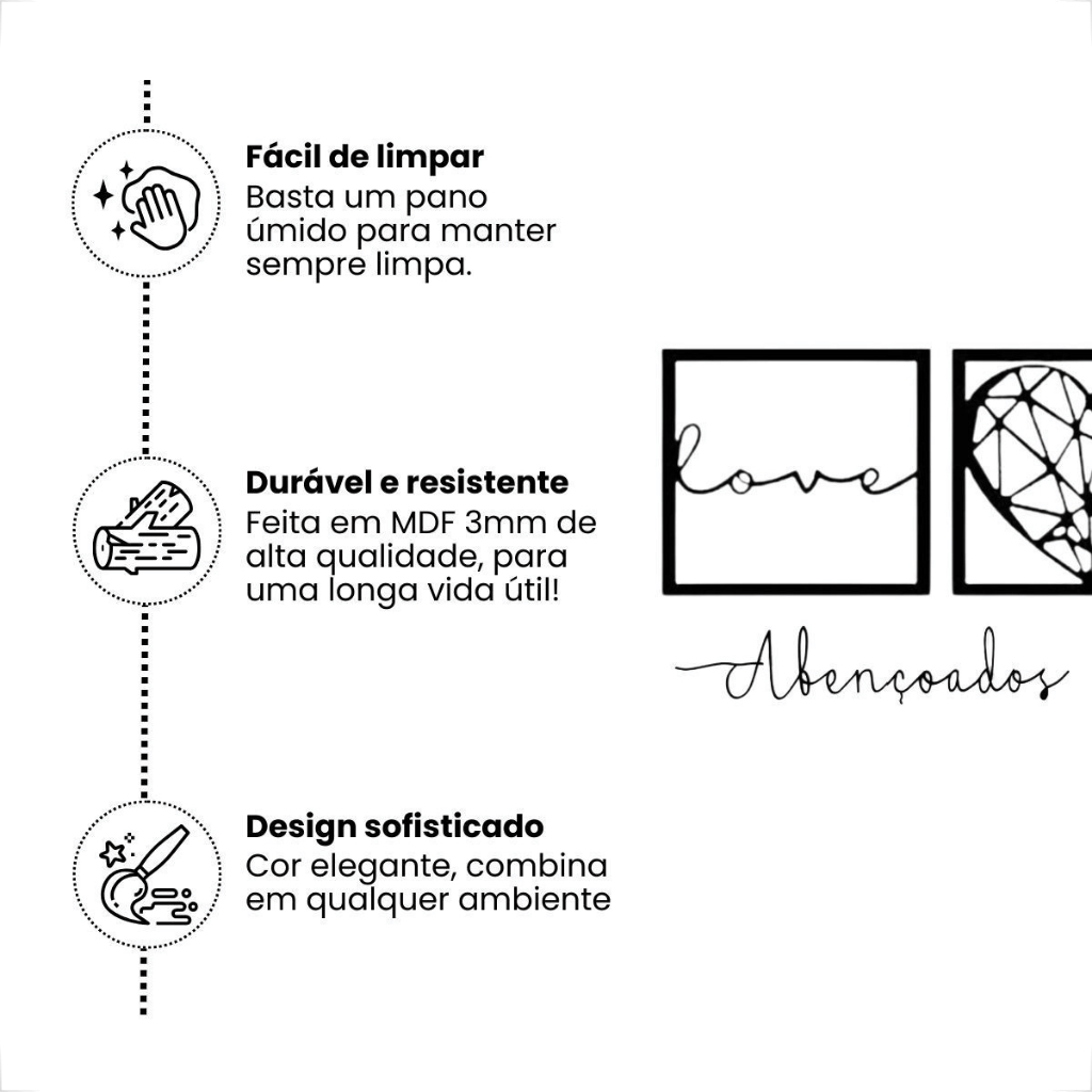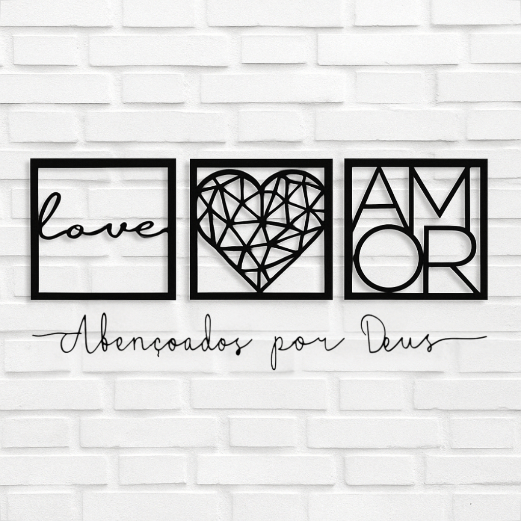 Quadros Decorativo Quarto Sala Grande MDF Preto Fosco Vazado Decoração Casa Com Frase -4 Unidades