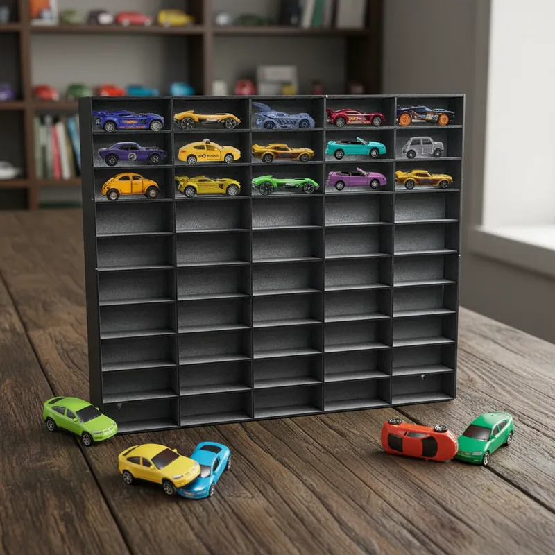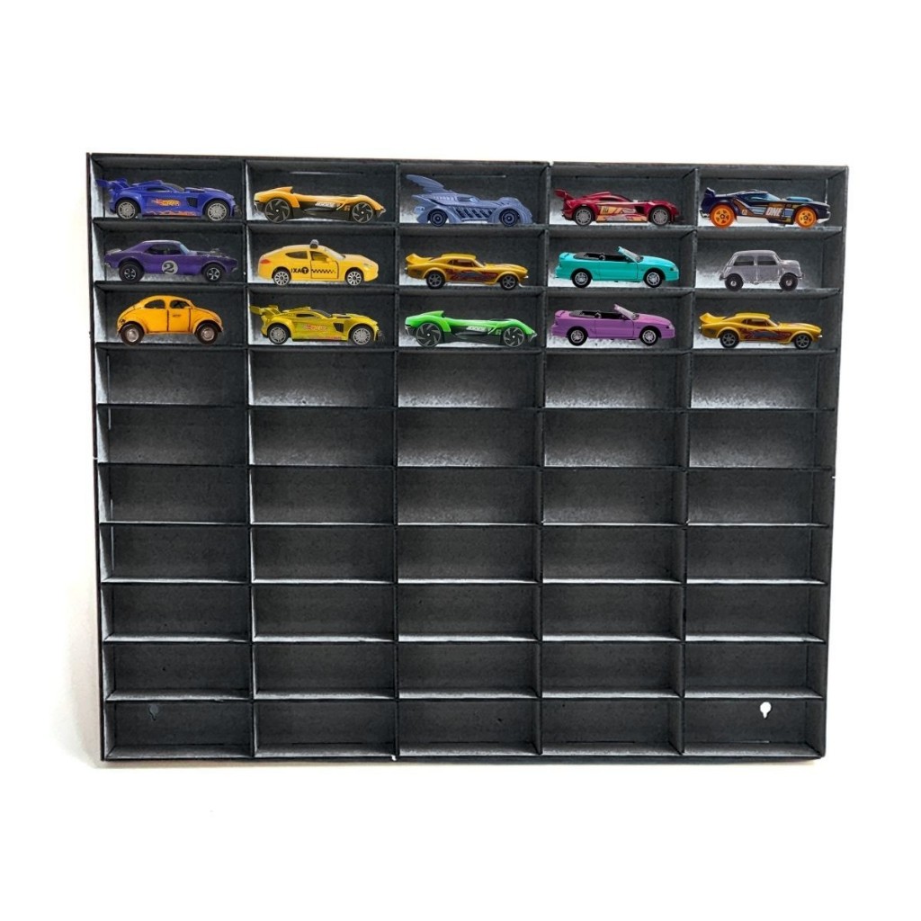 Organizador de Carrinhos Hot Wheels em MDF Modelos Cru e Preto Para 50 Miniaturas
