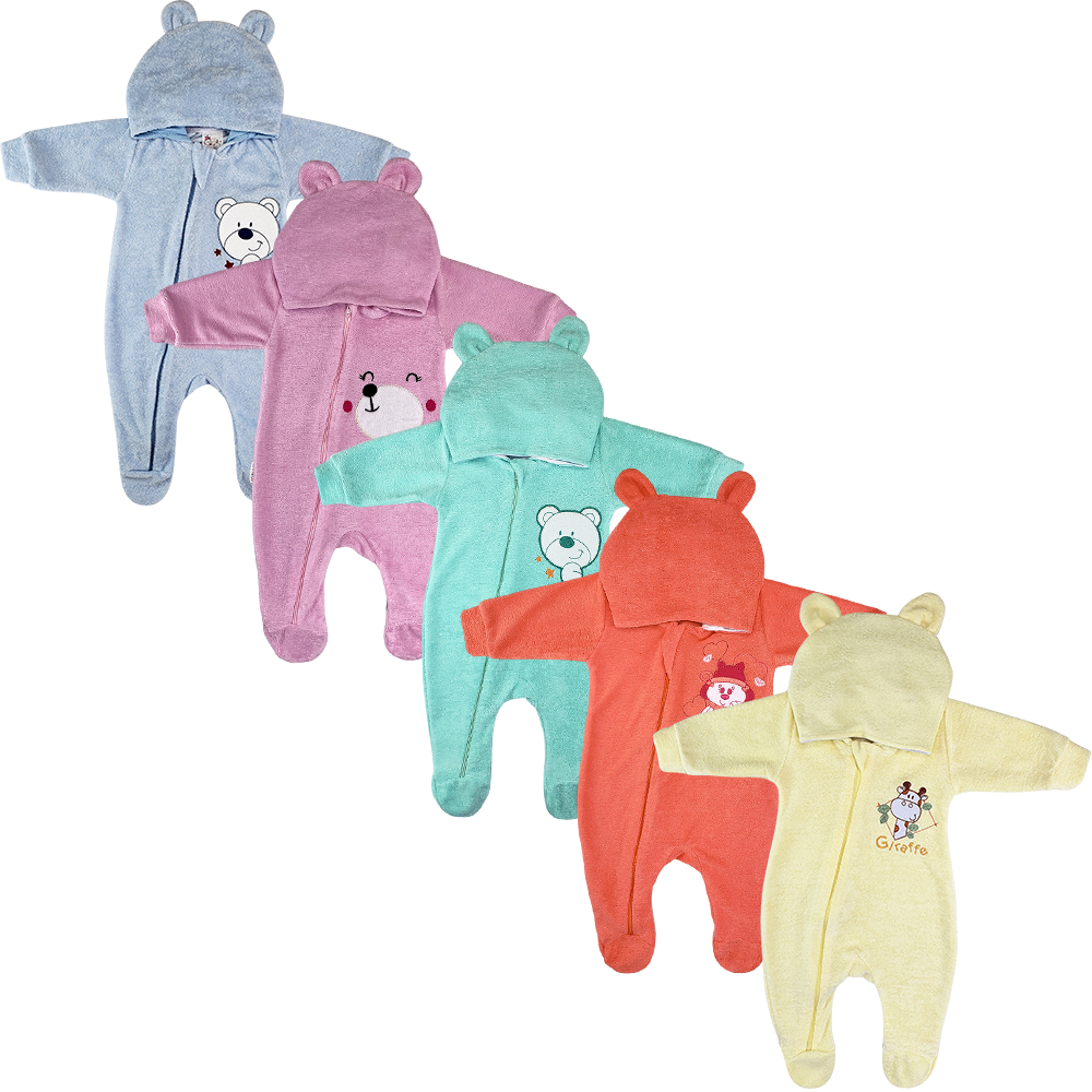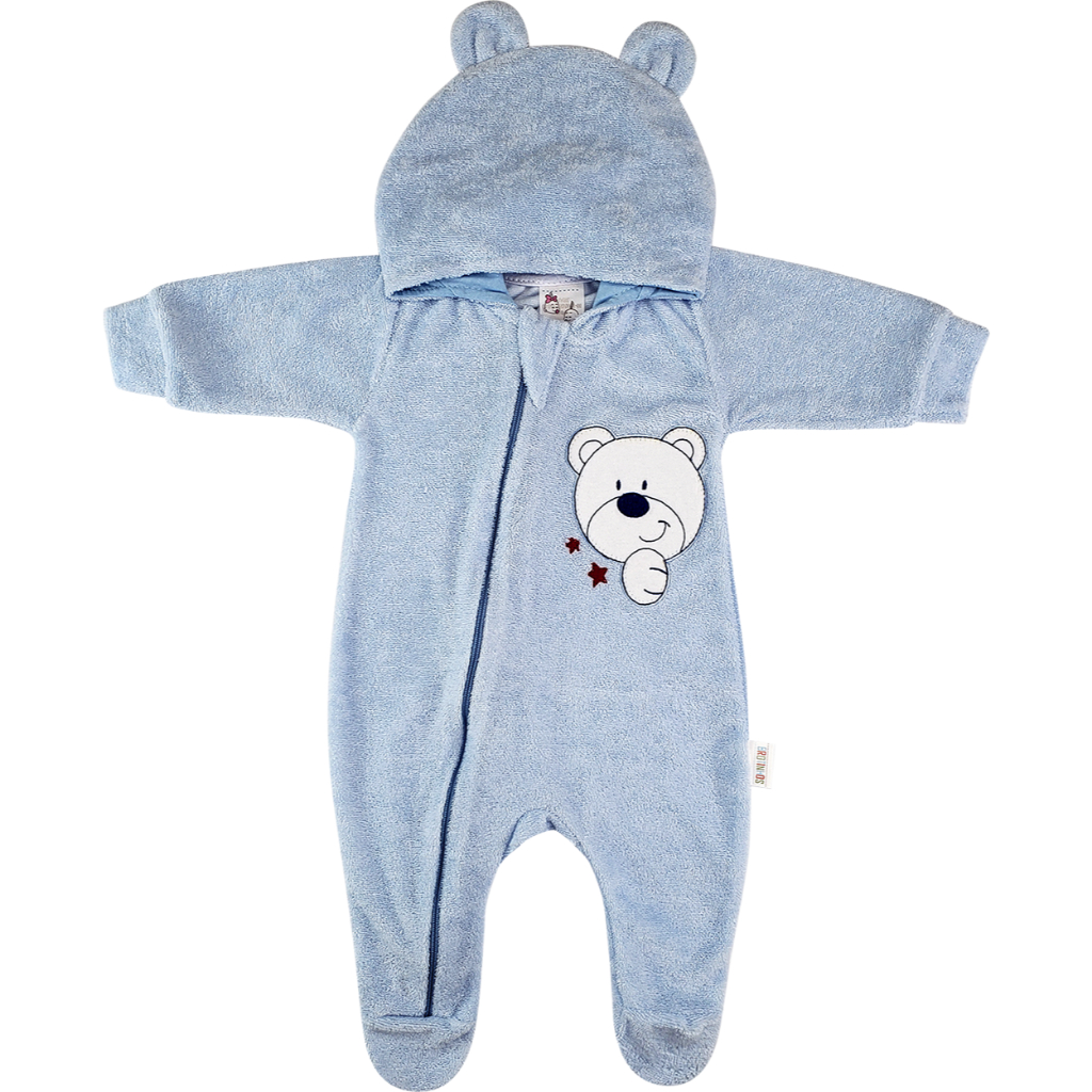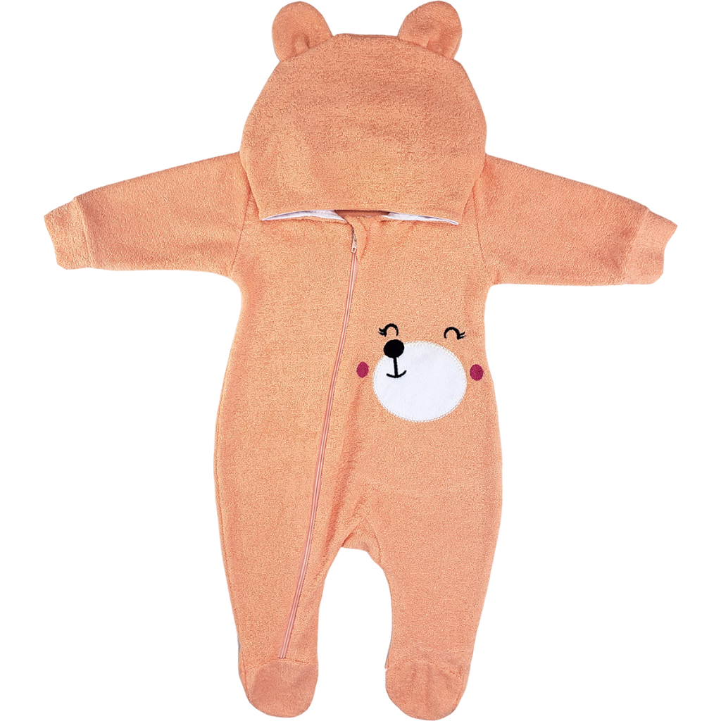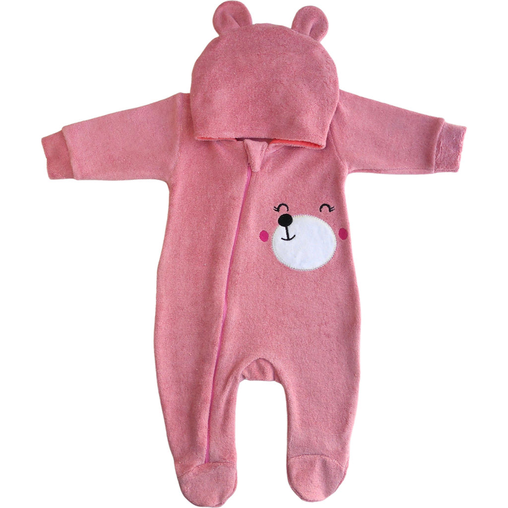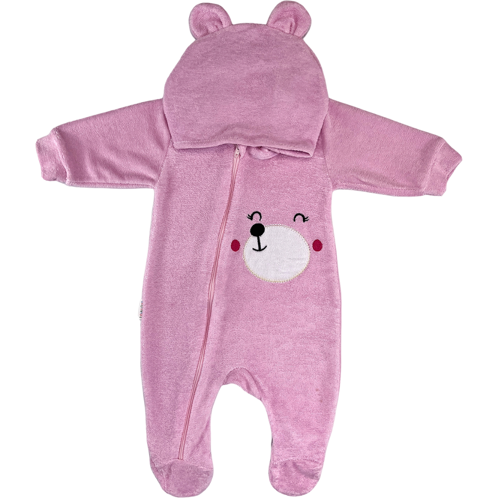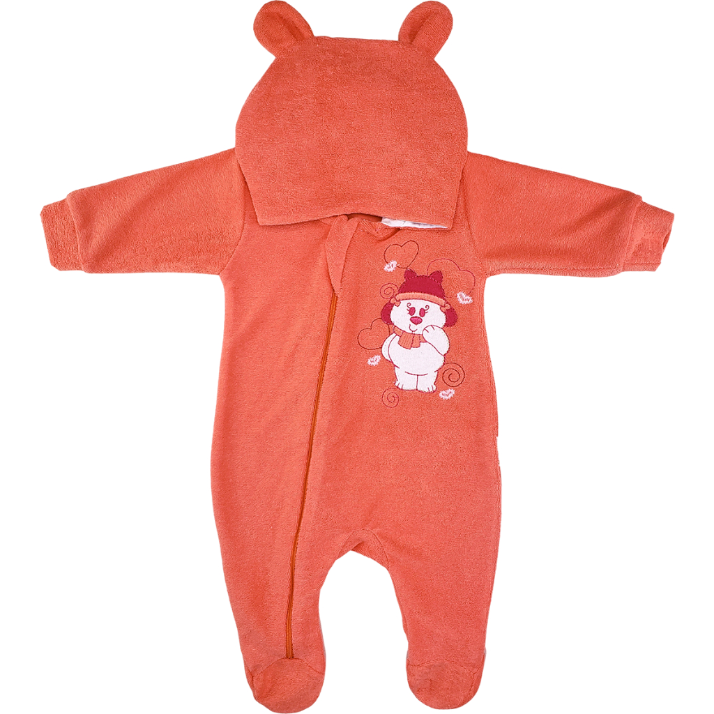 Macacão Bebê Plush Atoalhado Menino Capuz Zíper Orelhinhas