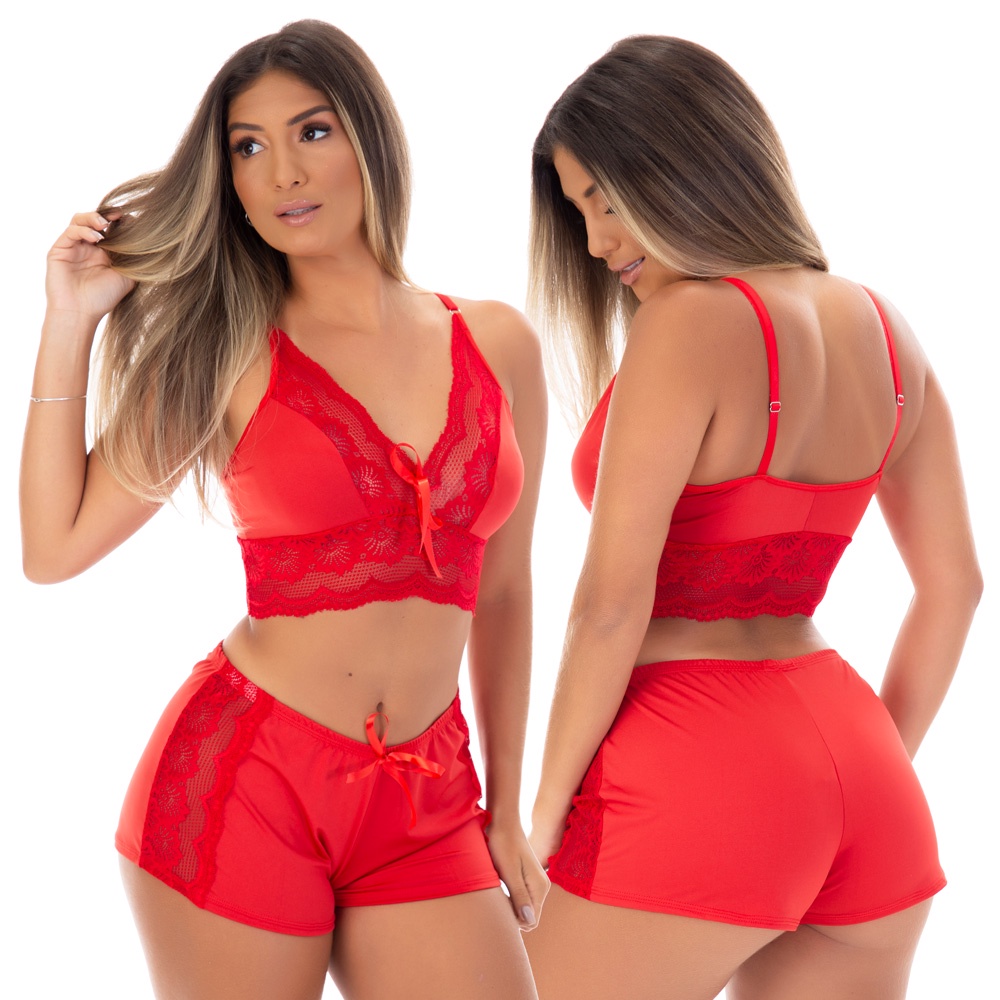 Kit com um Top Doll Baby Doll mais um Robe Microfibra e Renda Moda | 832.850