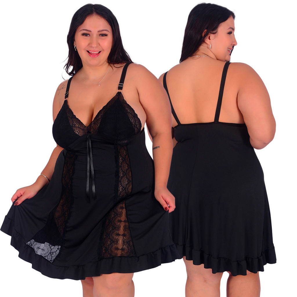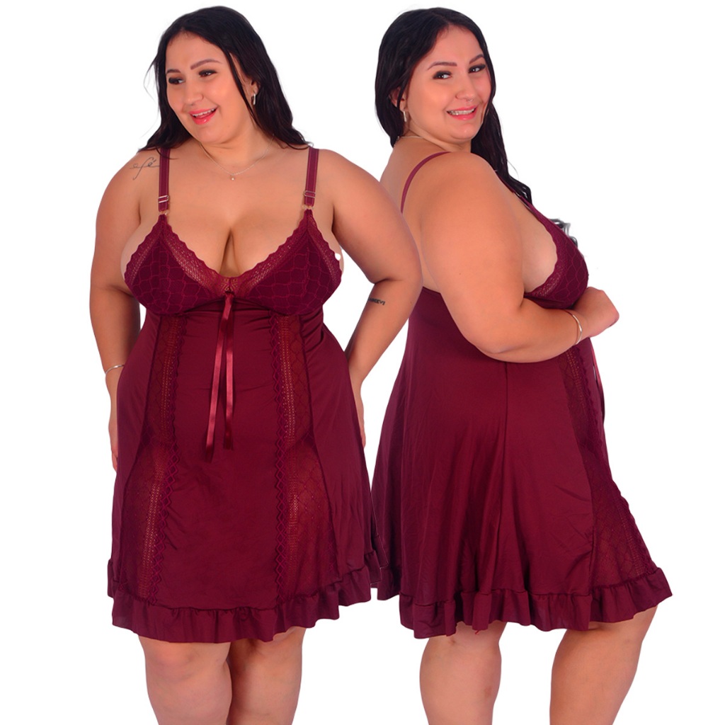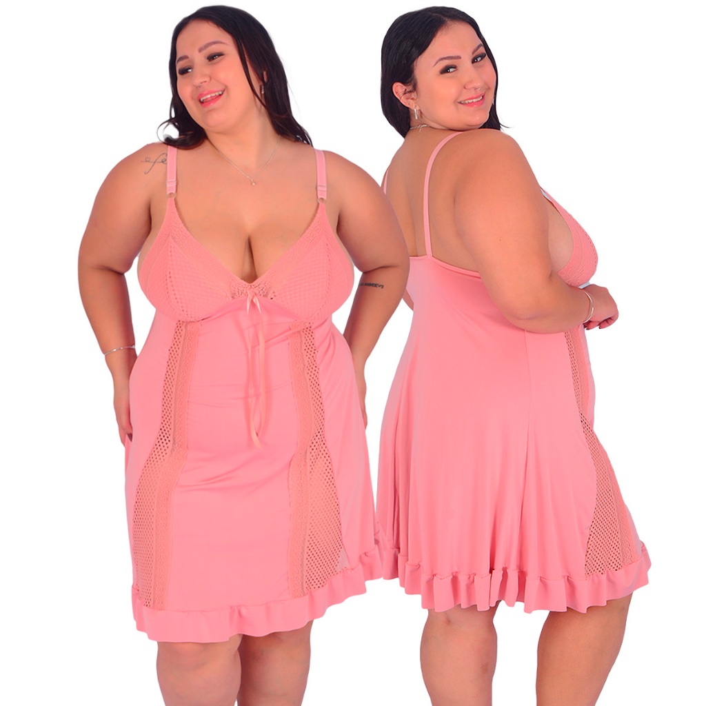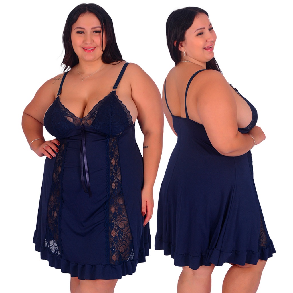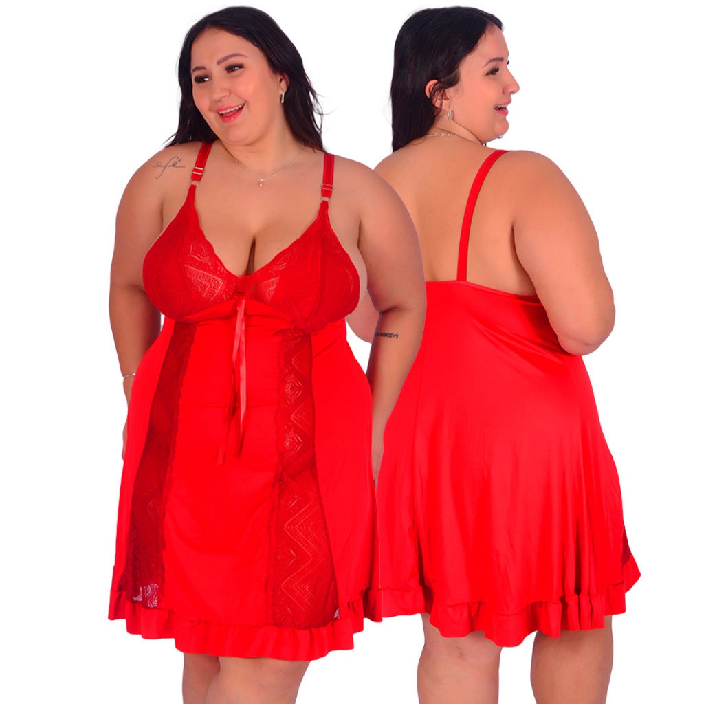 Promoção Camisola Plus Size Renda Luxo Moda Feminina Noite | 829