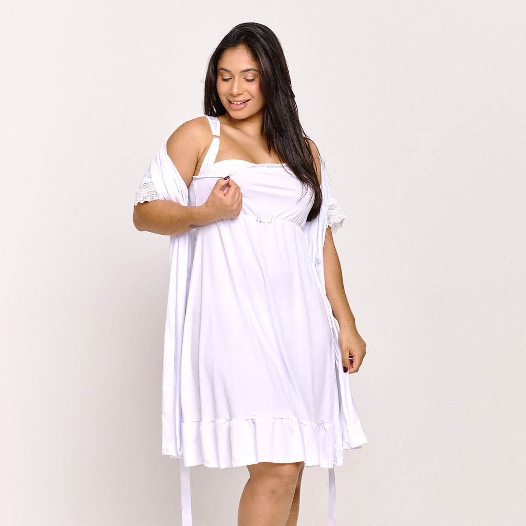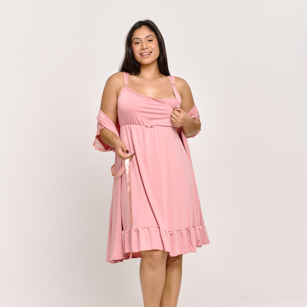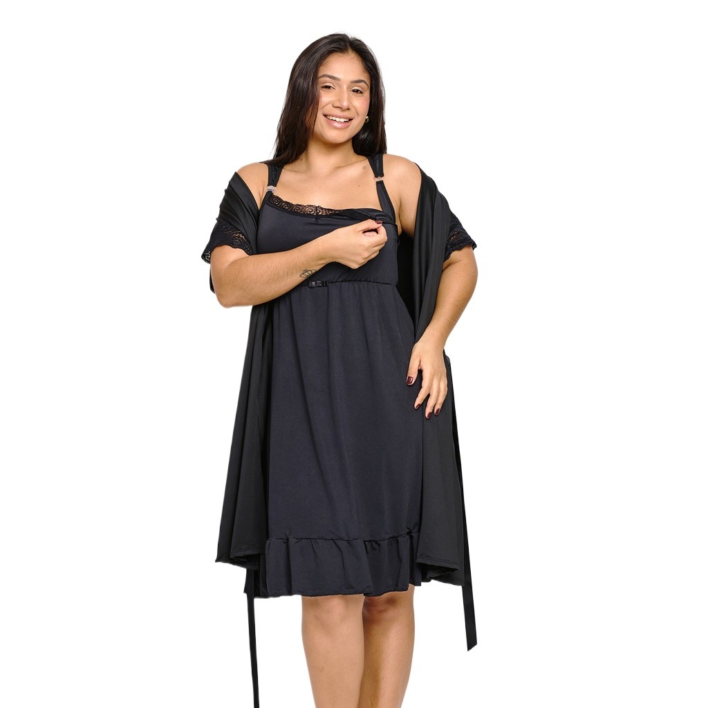 Kit Camisola Amamentação mais Robe Microfibra e Renda Moda Feminina | 184.811