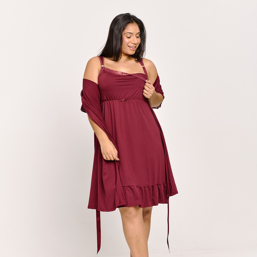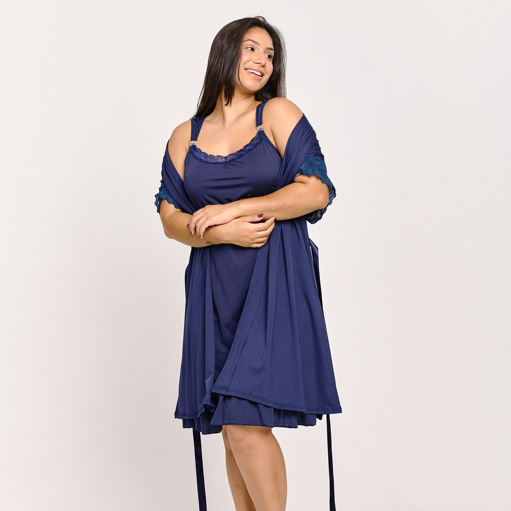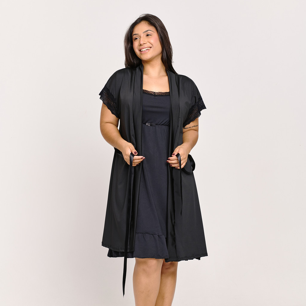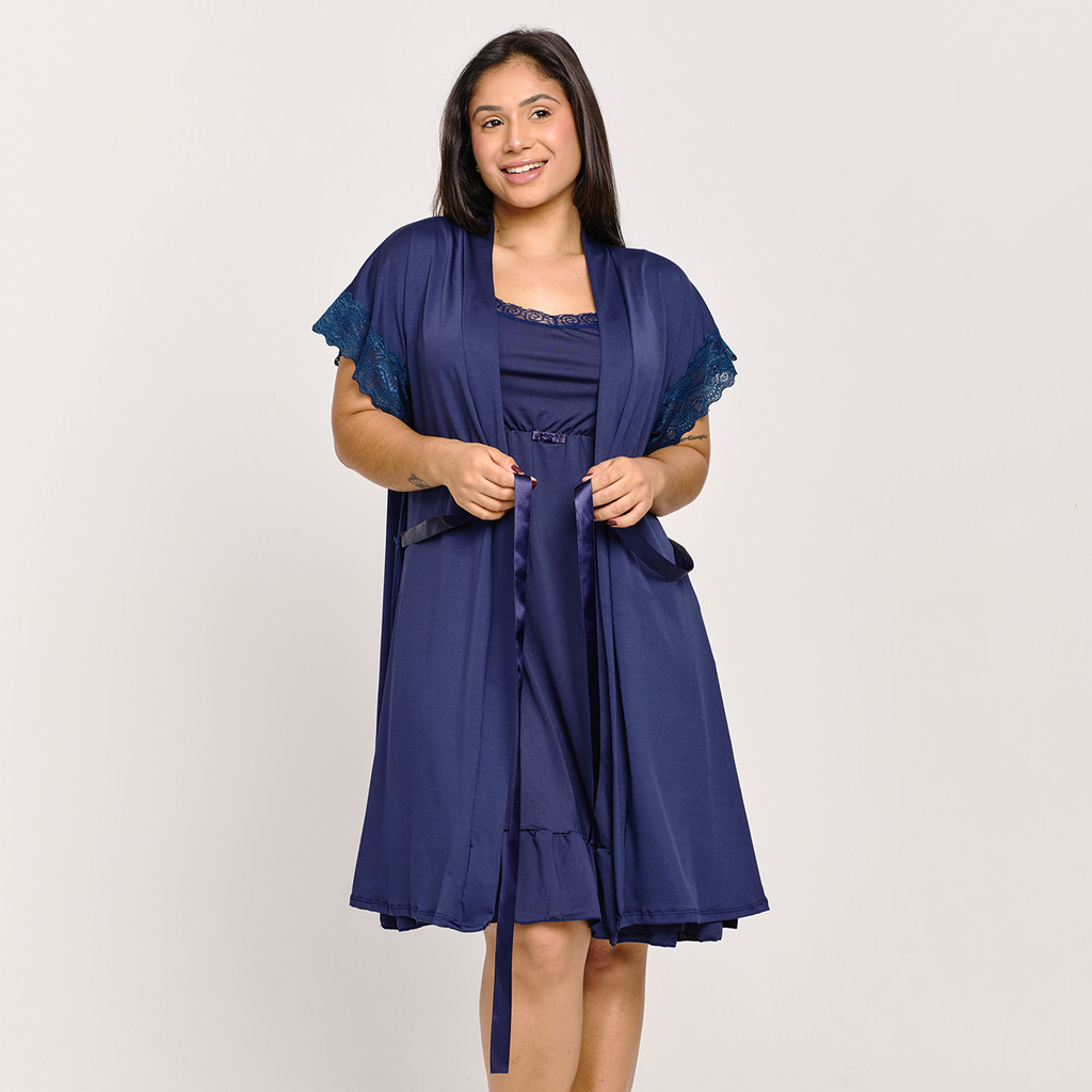 Kit Camisola Amamentação mais Robe Microfibra e Renda Moda Feminina | 184.811