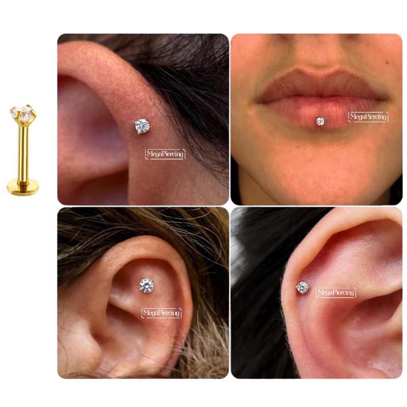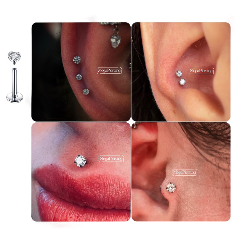 Piercing Ponto de Luz Orelha Hélix Trágus 6mm 8mm 10mm