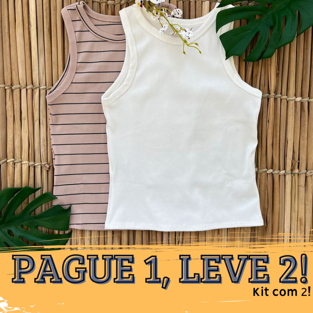 Kit 2 Regatas Canelada Feminina Camiseta Casual Blusa Básica Tendência Moda Gringa