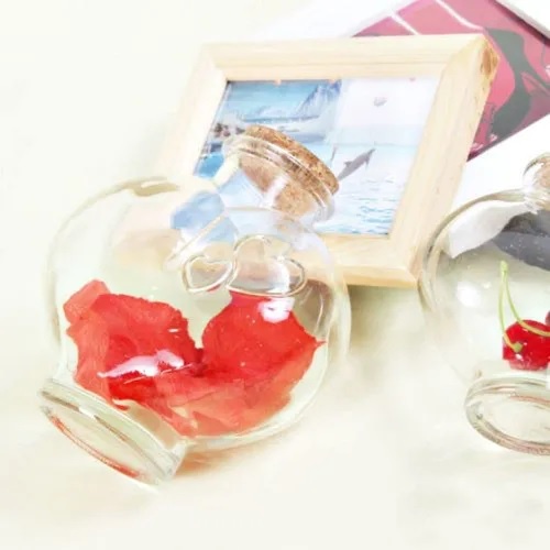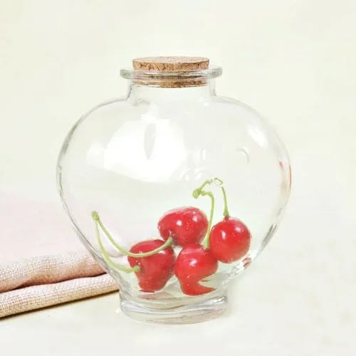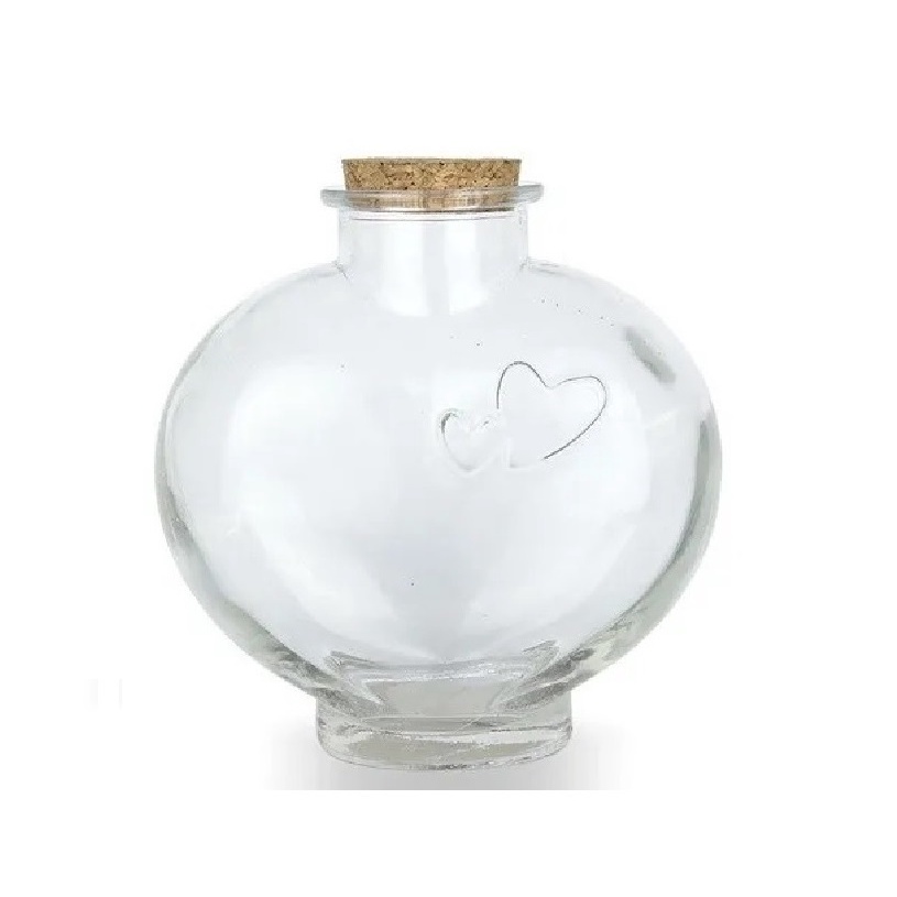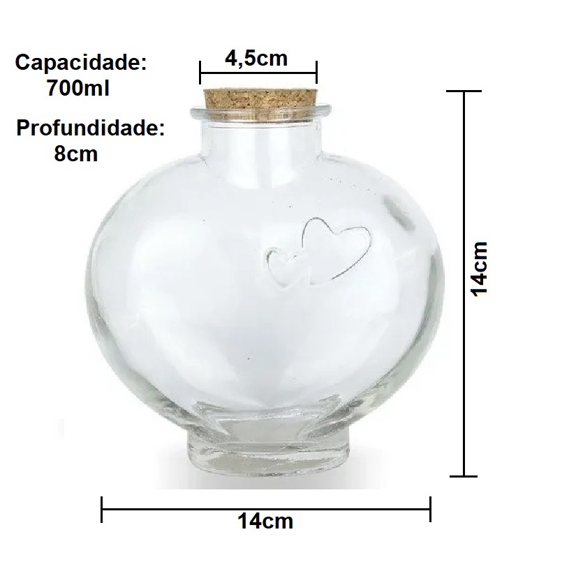 Kit 2 Potes Garrafa Frasco Coração De Vidro 700ml Com Rolha Mantimentos Porta Tempero Plástico Potes