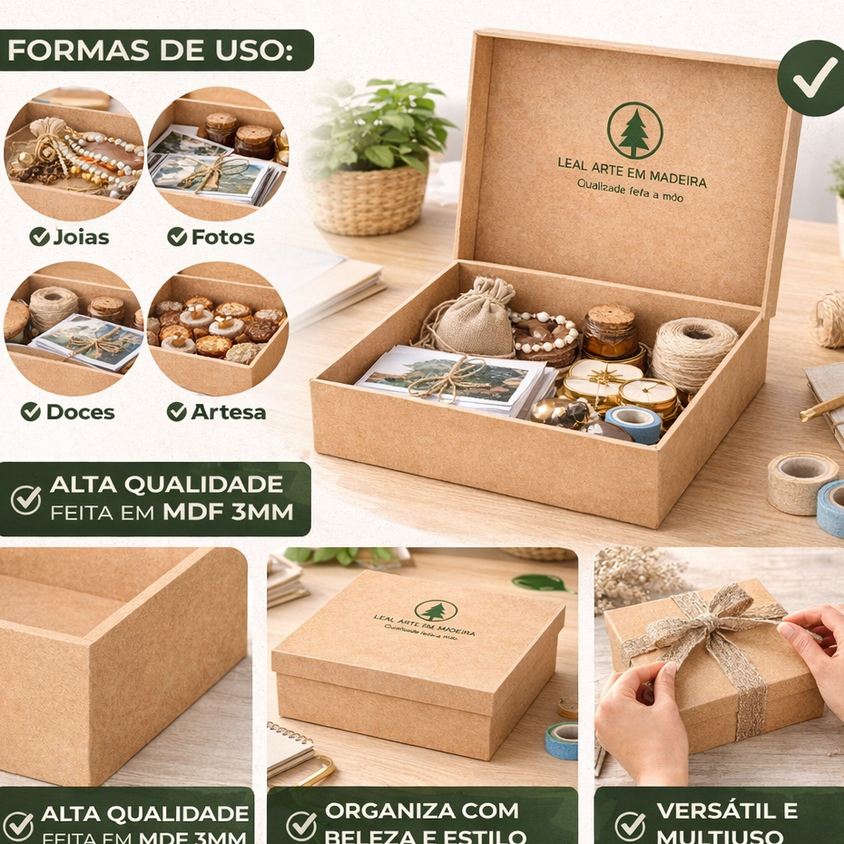 Caixa 25x25x8 MDF Cru Lembrancinha Casamento Aniversário