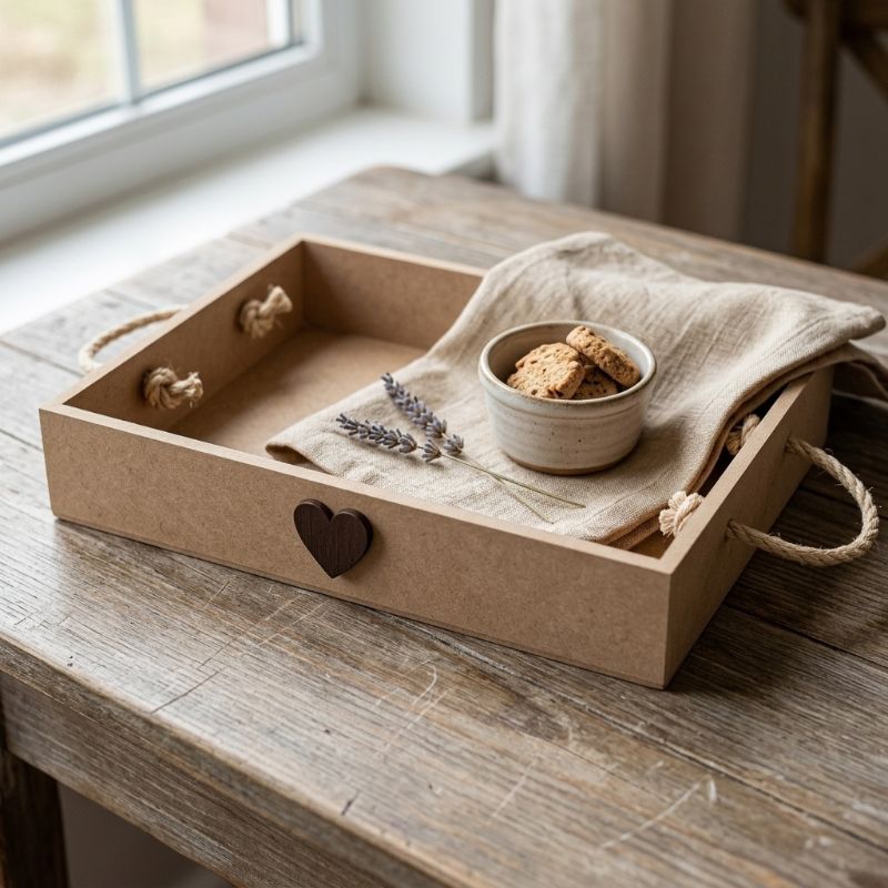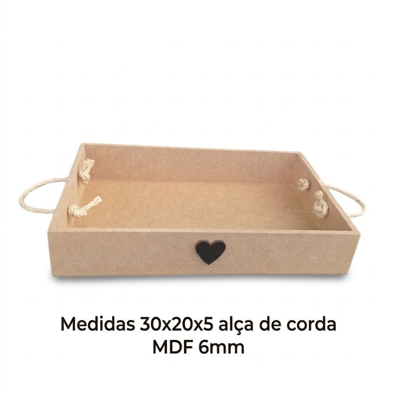 Cesta MDF Alça de Corda café da Manhã 30x20x5 Presente Mães Namorados