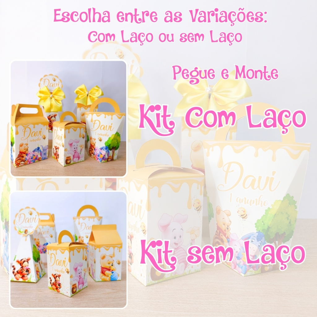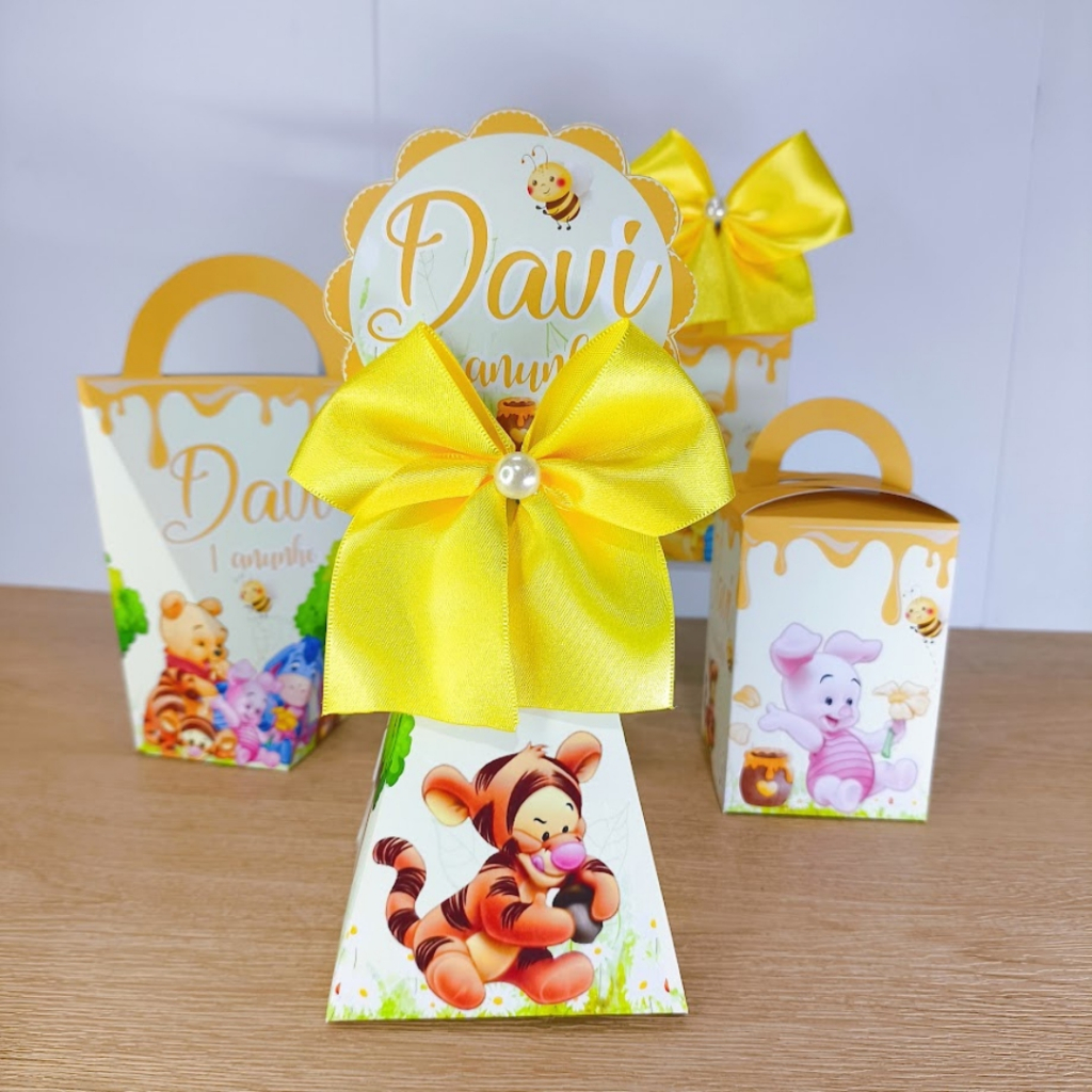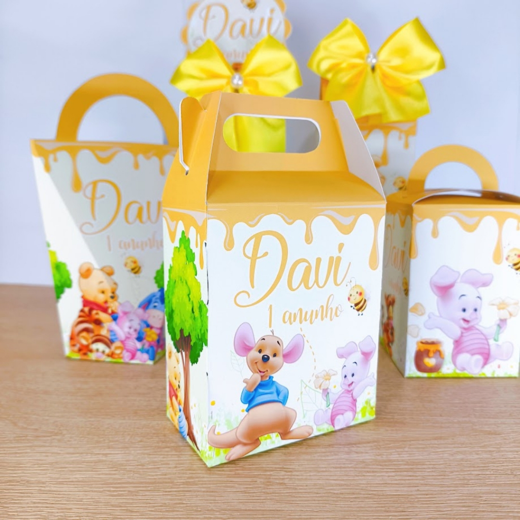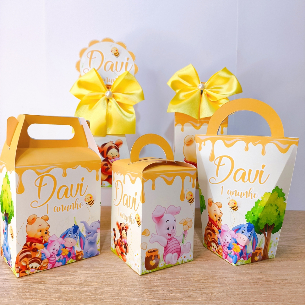 Kit Caixas Personalizadas Ursinho Pooh Pegue e Monte Lembrancinhas Aniversário Infantil