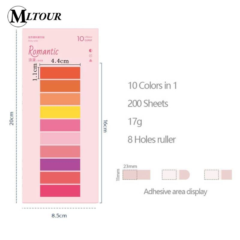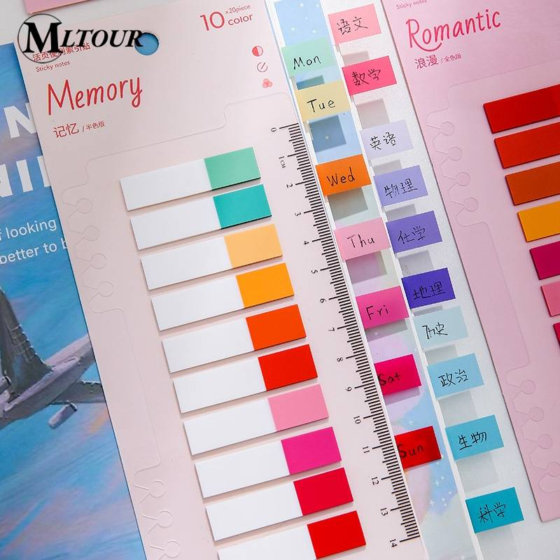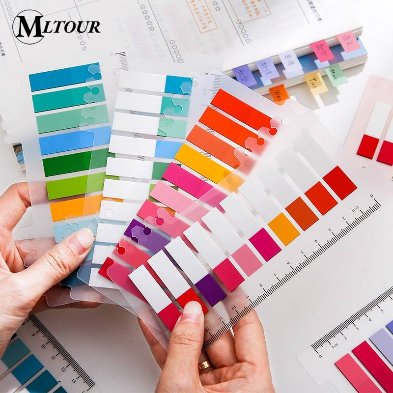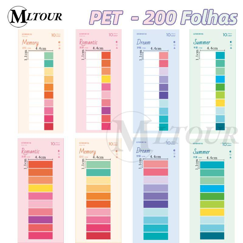200 Folhas/pc Ins Style Index PET Candy Cor Folha Solta Índice Adesivos Pegajosos Estudantes Corretos Régua