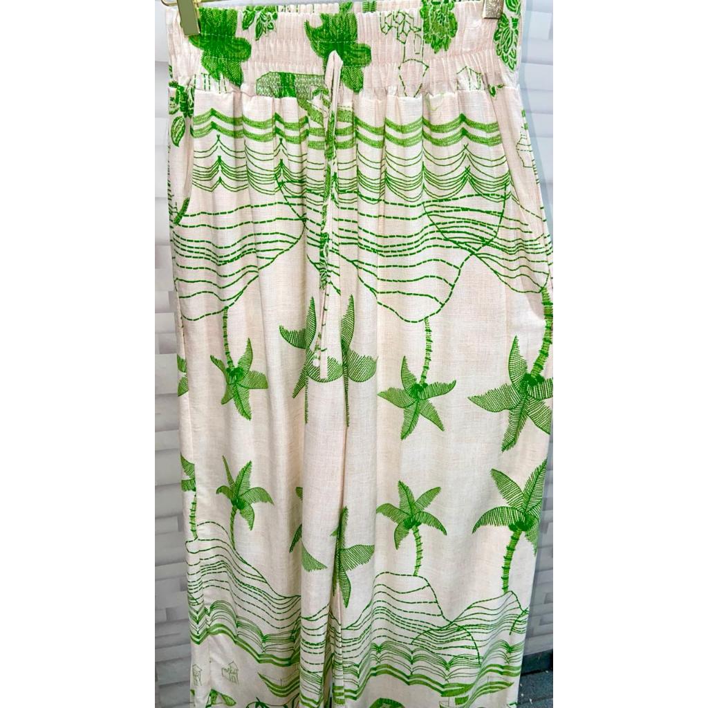 Calça Pantalona Estampada Cintura Alta Bolsos Forro Viscolinho