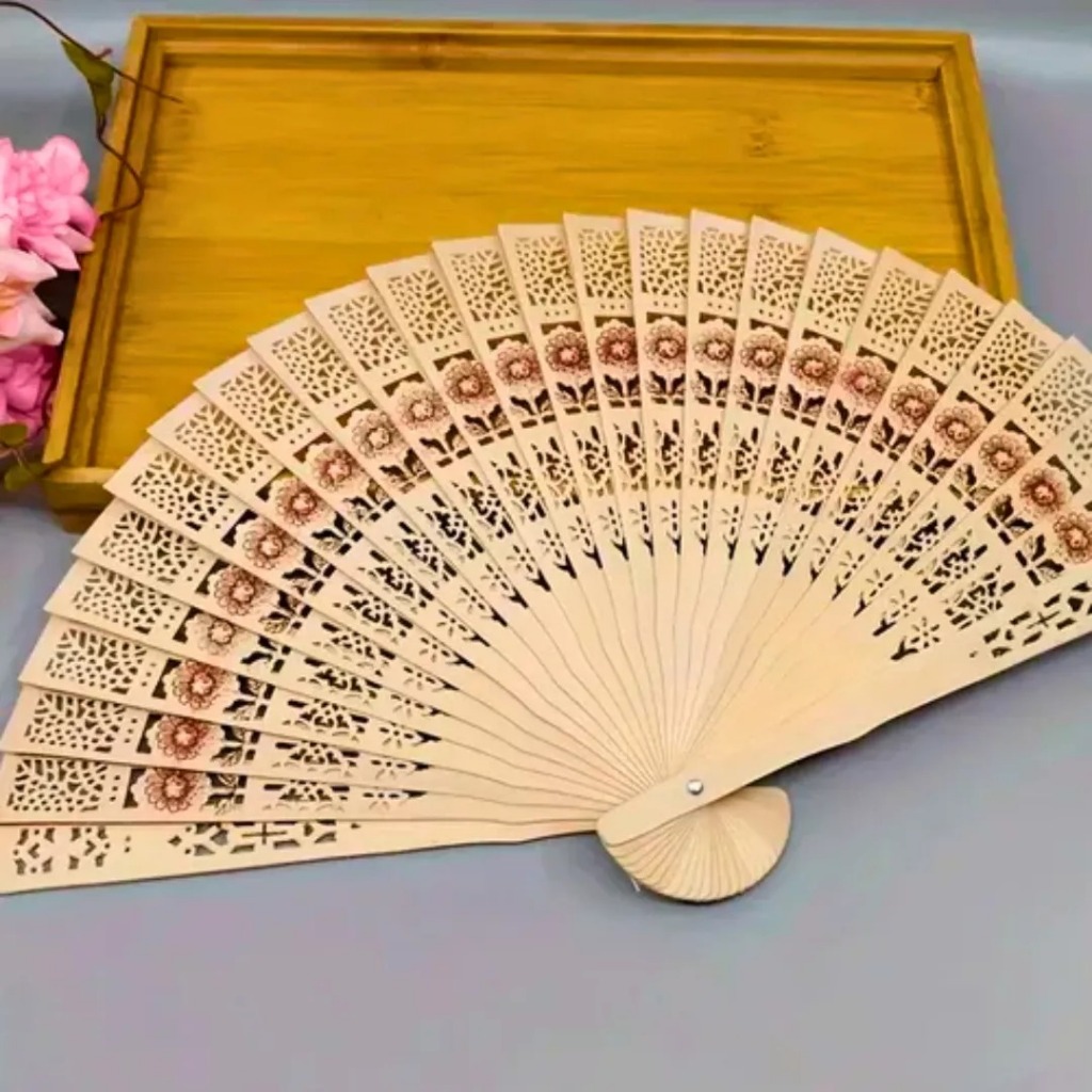 1 Leque De Mão Madeira Oriental Chique