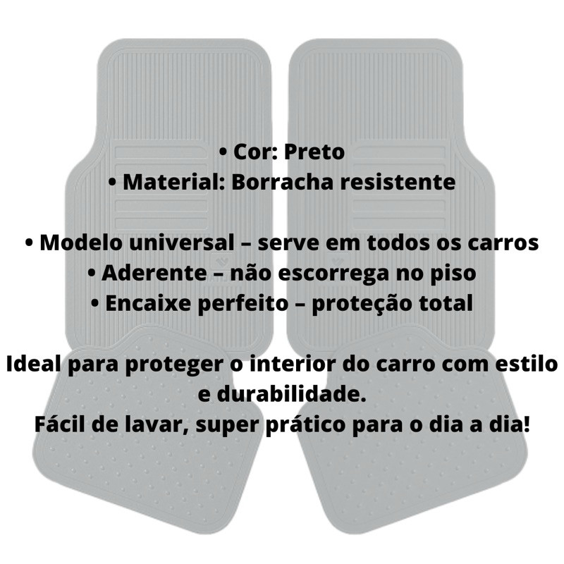 Tapete Automotivo Grosso Resistente Universal Carro Borracha Premium Encaixe Perfeito 4pçs
