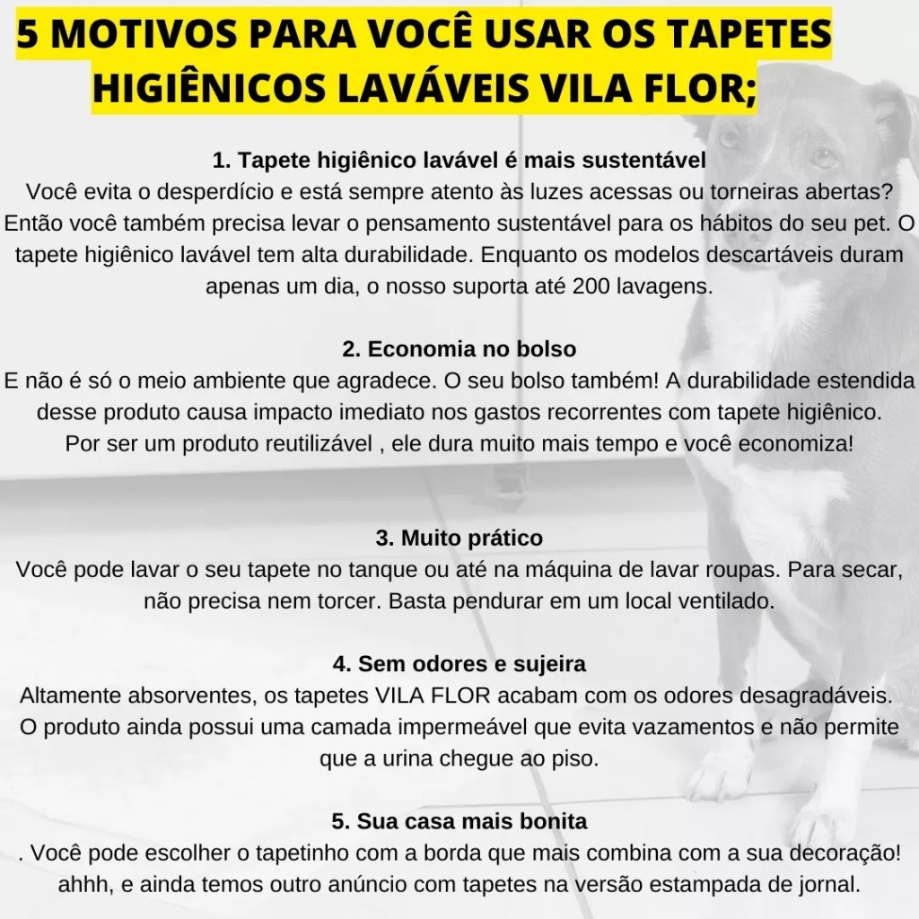 3 TAPETES HIGIÊNICOS LAVÁVEL PREMIUM - ESTAMPADOS 70x50 - Kit com 3 tapetes. 300 lavagens