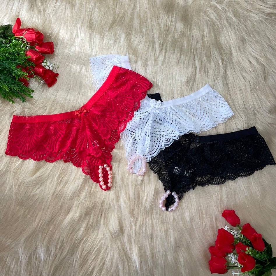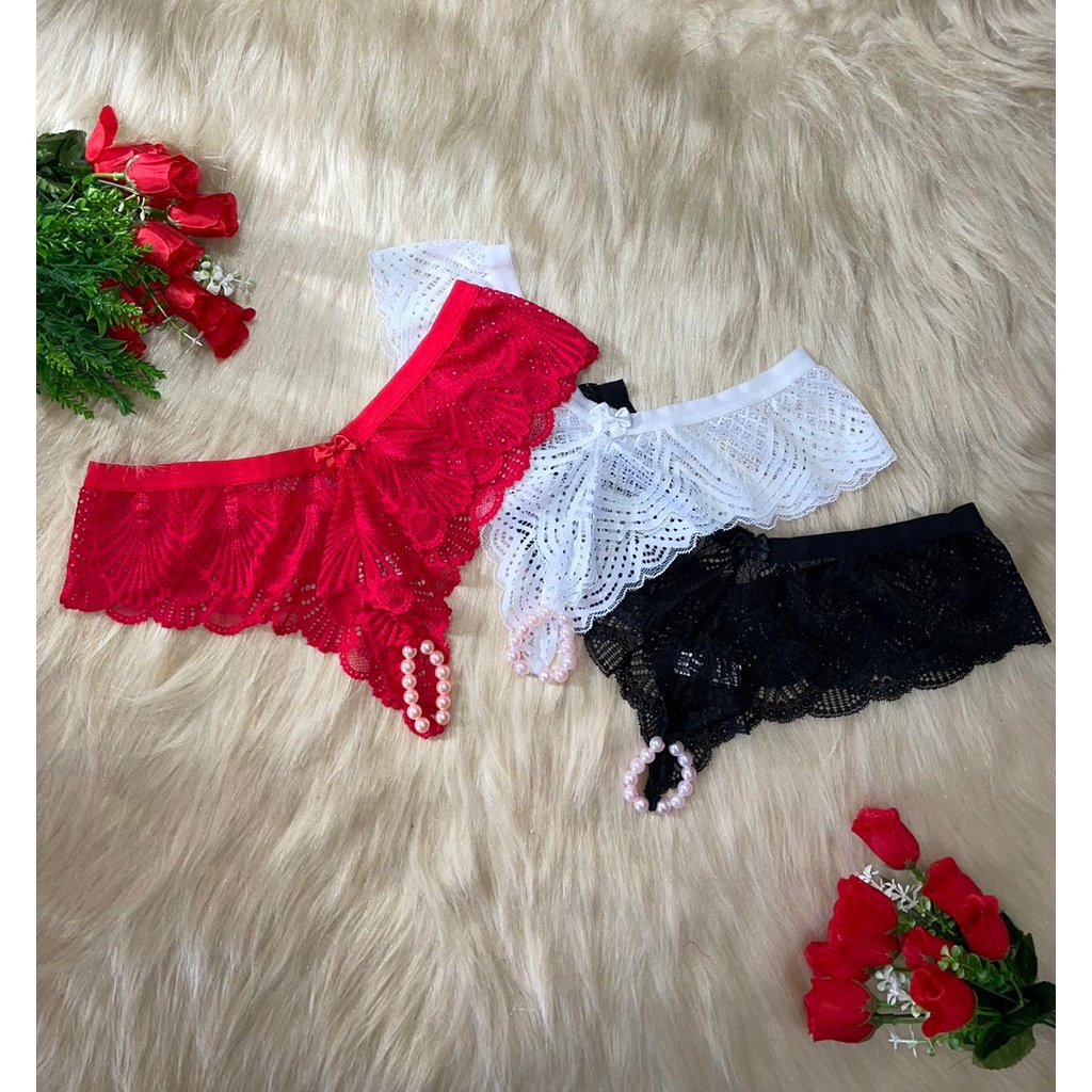 kit 3 Calcinha Tailandesa Luxo Pérolas Estimulantes Victória Lingerie