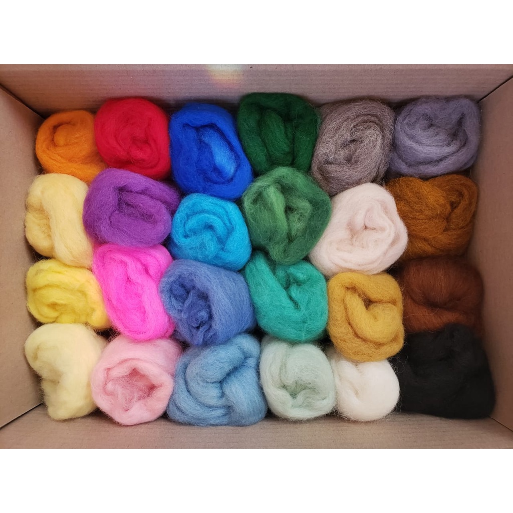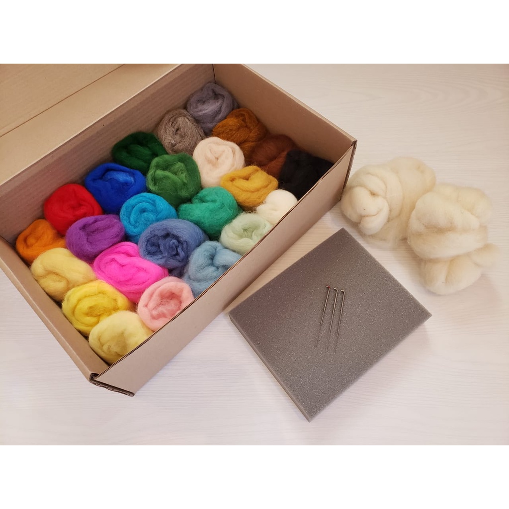 Kit Completo Lãs para feltragem 24 cores 288g + 3 Agulhas + Base