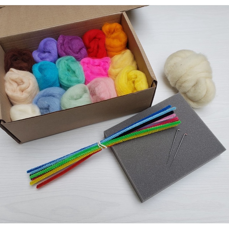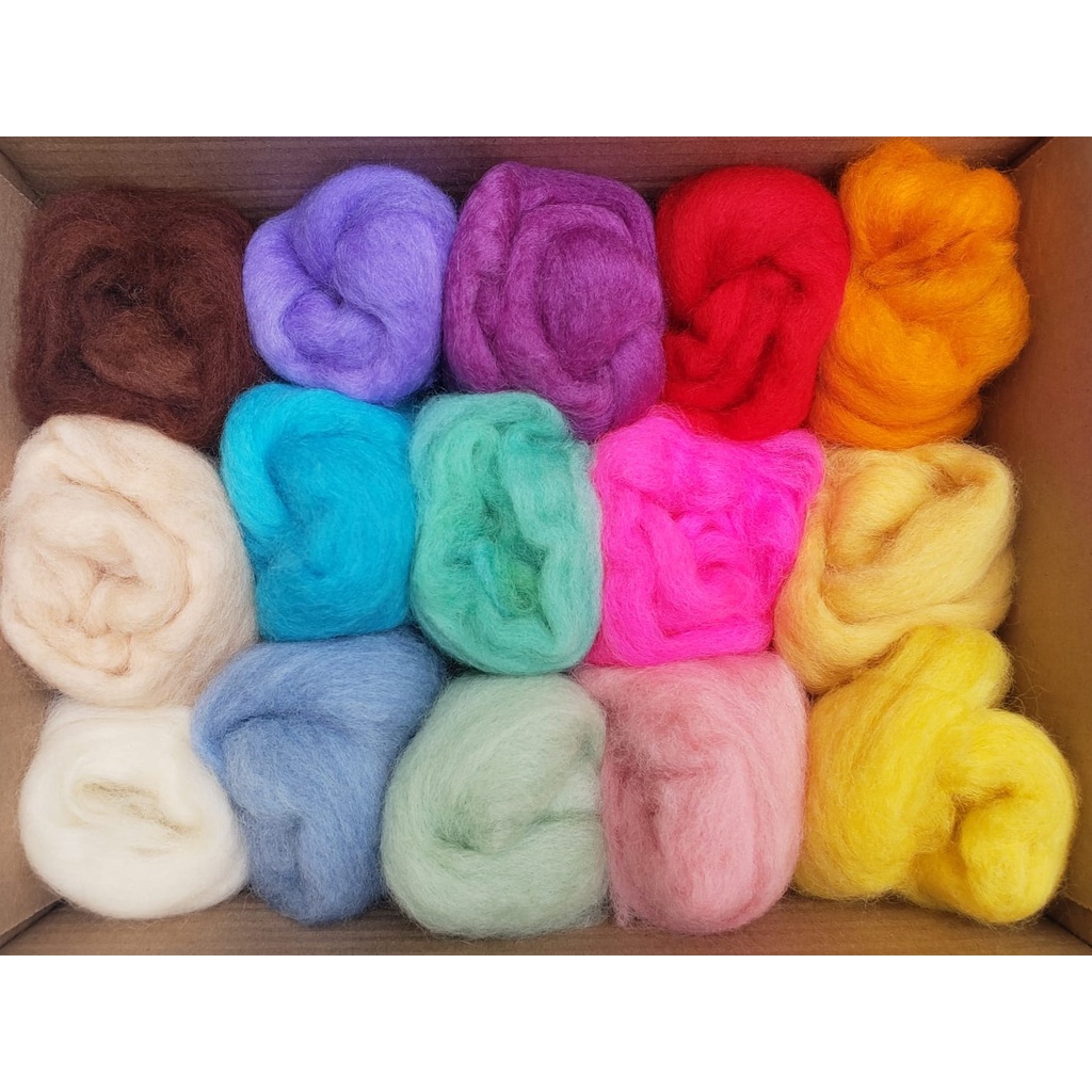 Kit Lãs para feltragem Fadas - 15 Cores 210g + 2 Agulhas + base + arame