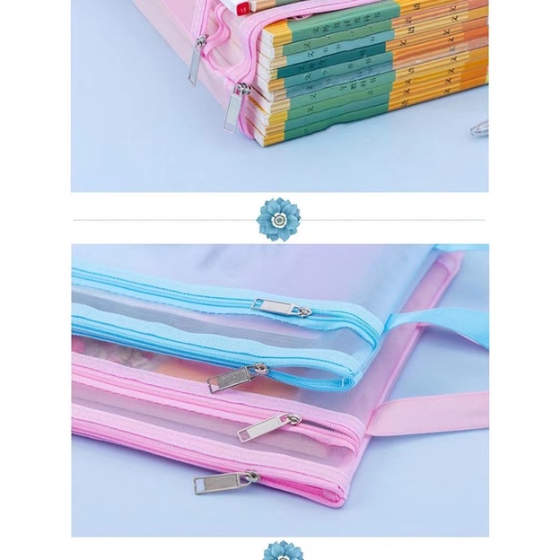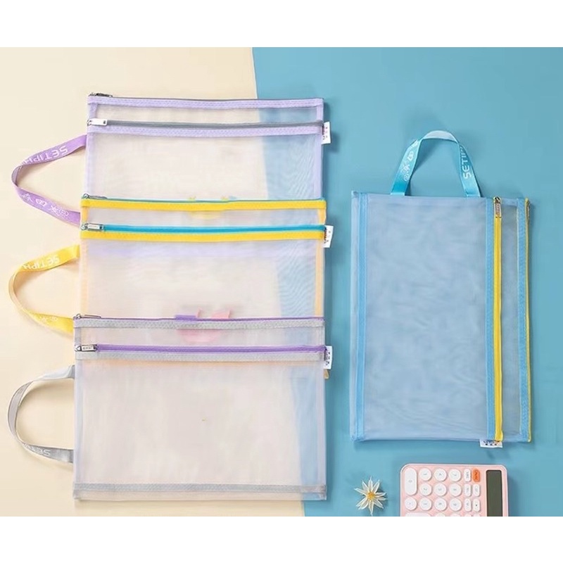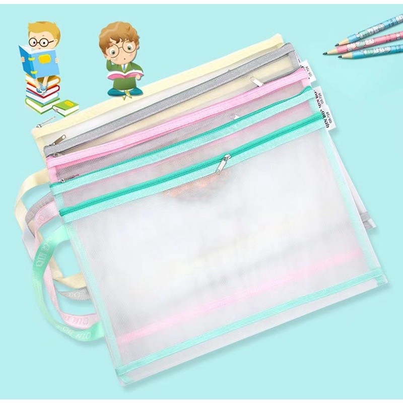 Porta documentos, pasta plástico Multiuso Com Zíper - Cores Sortidas 2 divisórias
